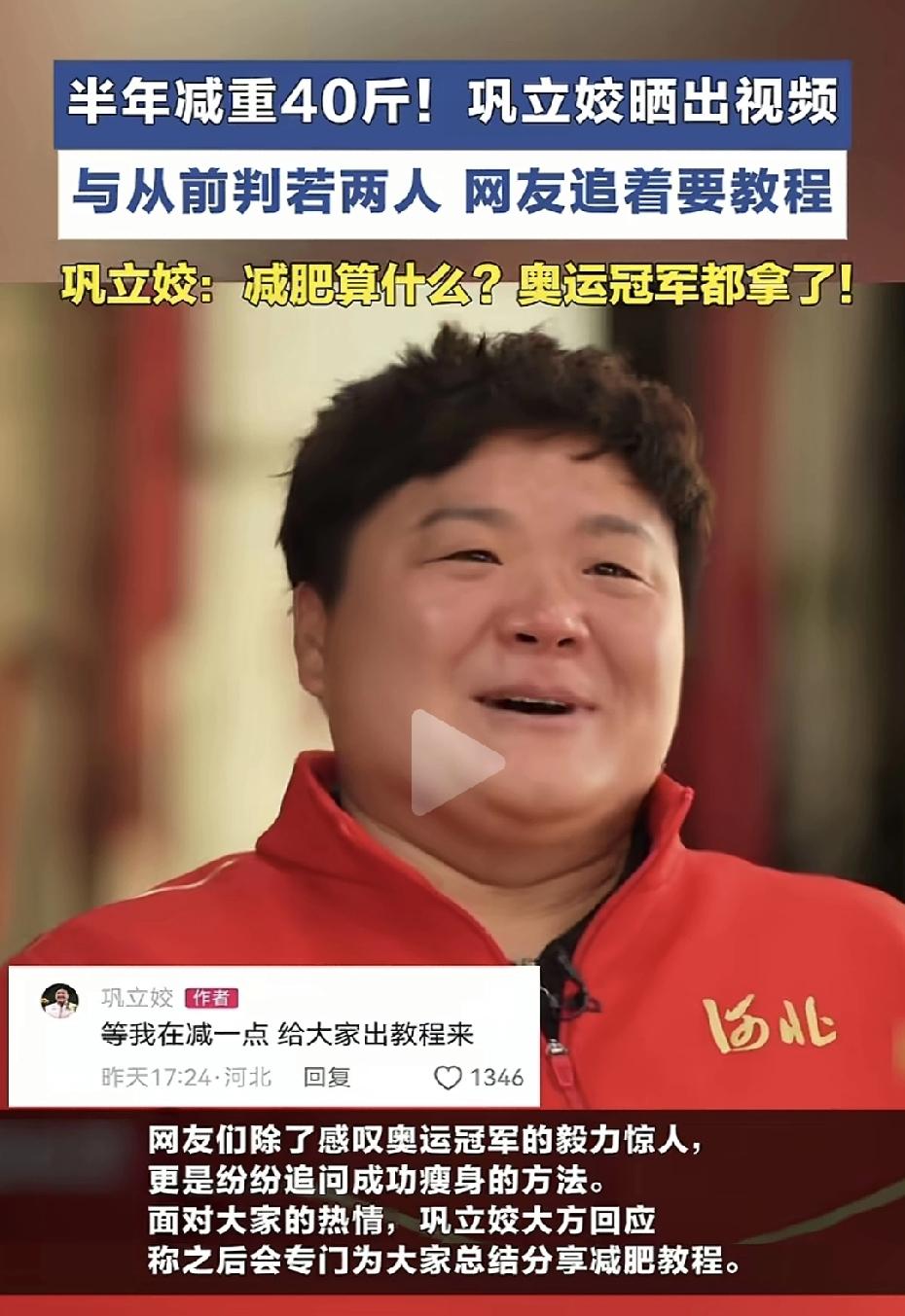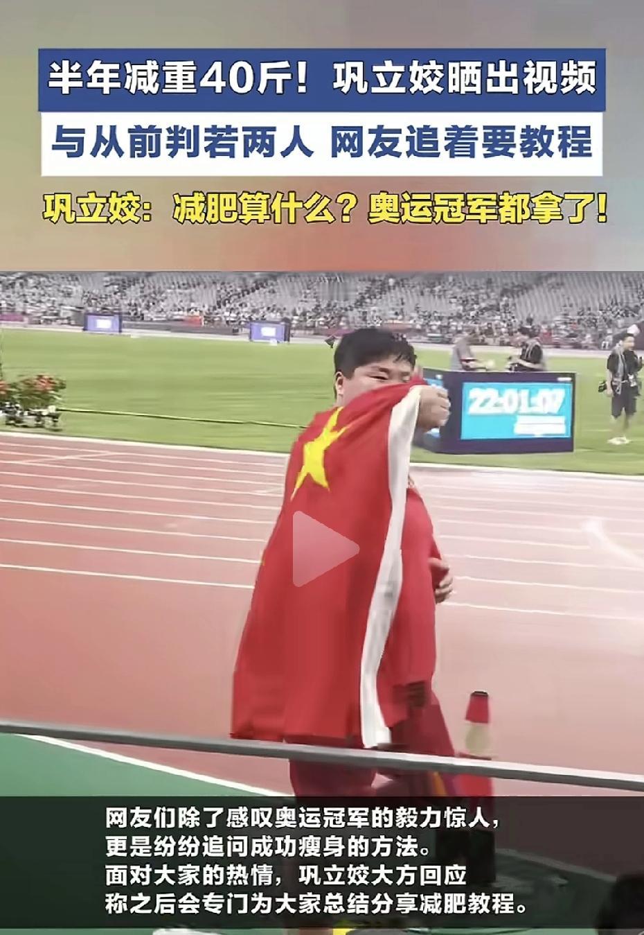 一下子减了40斤,真的不得不佩服运动员的毅力。 4月12日,奥运冠军巩立姣在社交