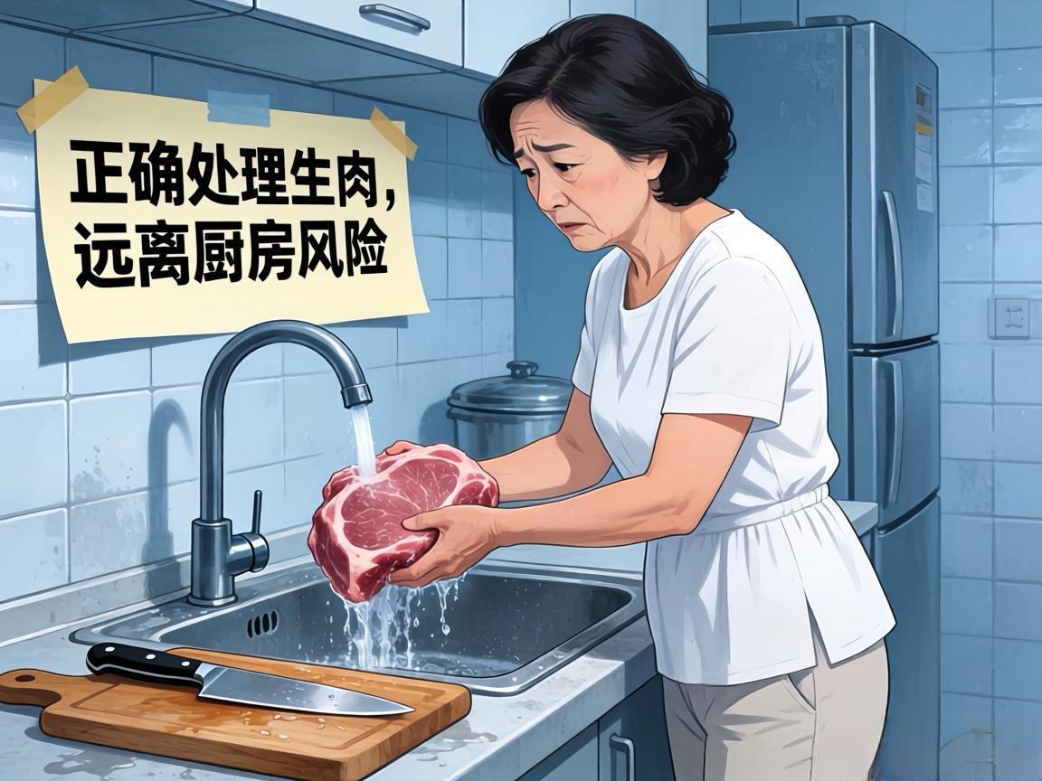 停!别再用自来水冲生肉了!你以为是在洗菜,其实厨房已变成“细菌炸弹”。