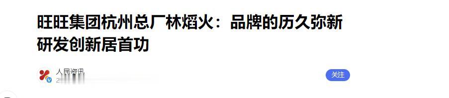 信息来源:《旺旺集团杭州总厂林熖火:品牌的历久弥新研发创新居首功》,人民资讯