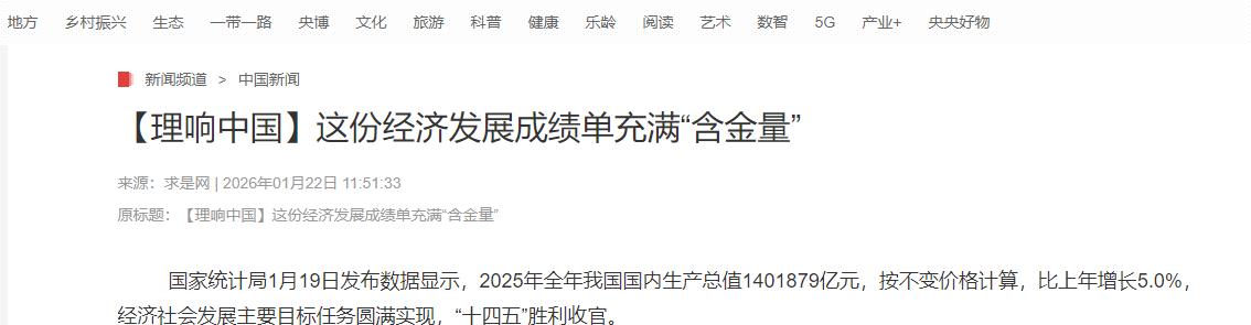 信息来源:《这份经济发展成绩单充满“含金量”》,求是网,2026年1月22日。