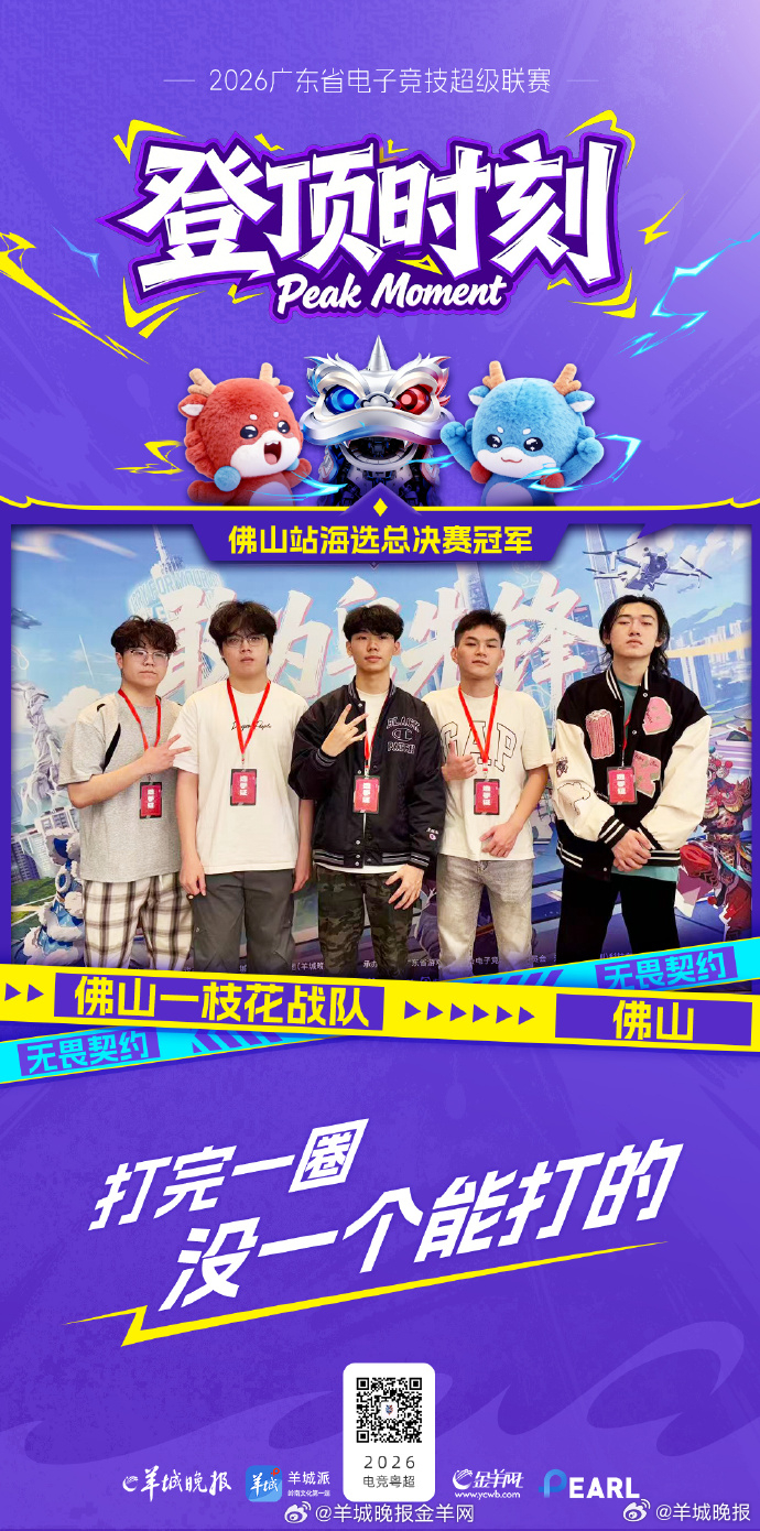【电竞粤超】佛山海选赛新王加冕!王者荣耀冠军:「五只哈基米」战队出战宣言:“我的功夫深,压尽群龙”无畏契约冠军:「佛山一枝花」战队出战宣言:“打完一圈,没一个能打的”两支战队将代表佛山出征电竞粤超城市巡回赛!
