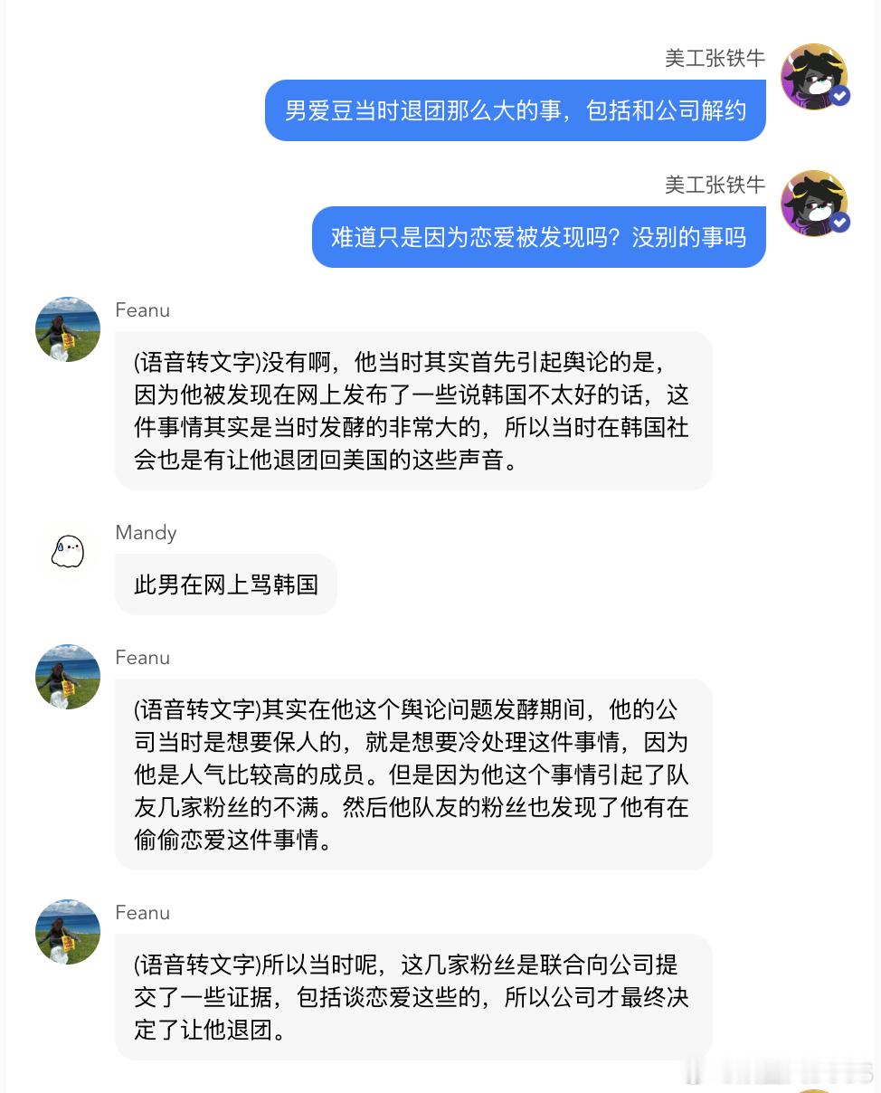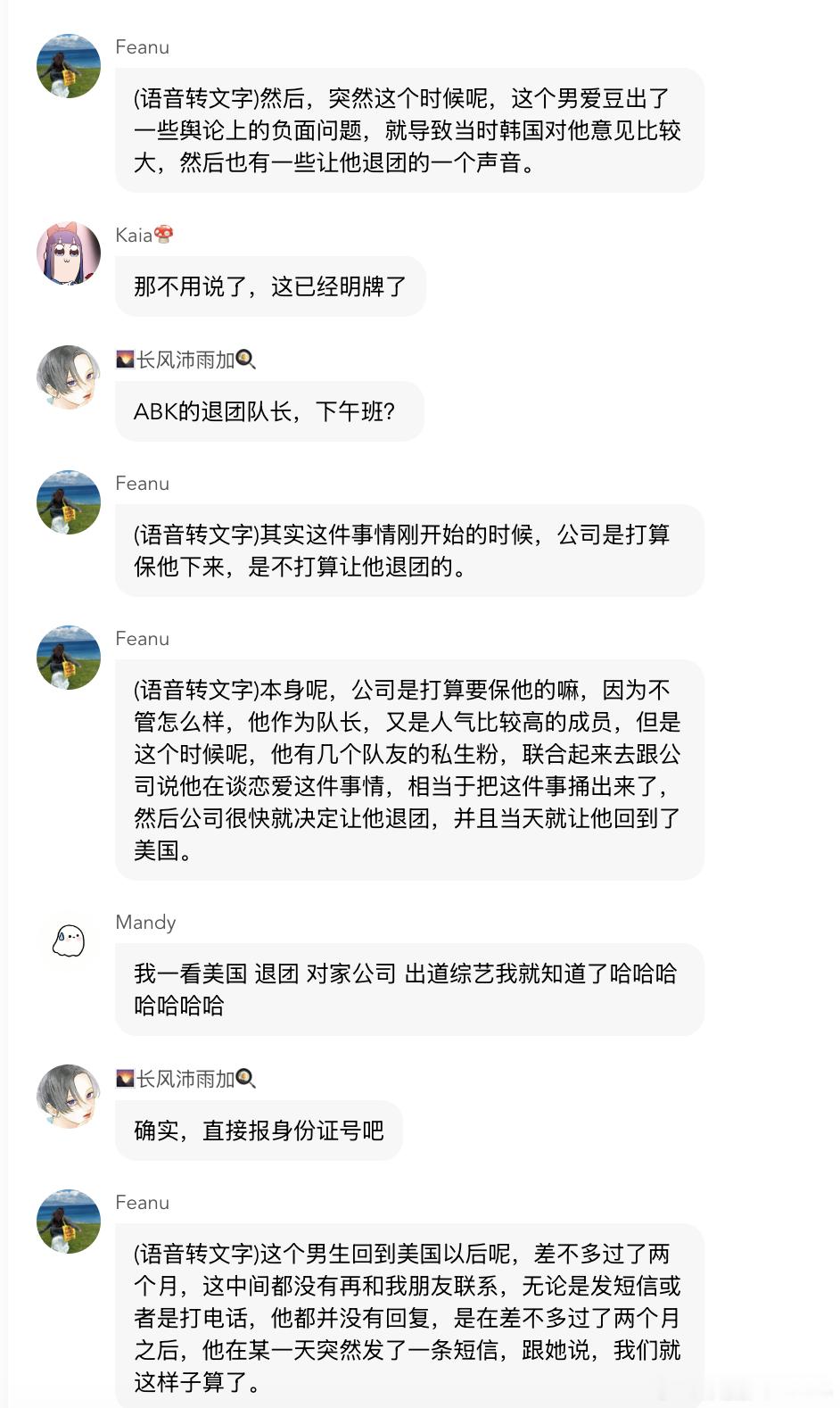 曝朴宰范当年退团是因为恋爱曝朴宰范2PM时期一直在恋爱 也是吃到真韩流顶流的瓜了 👉爆料主体:前韩娱练习生 F 老师分享其 ABK(美国籍韩裔)练习生室友的恋爱经历👉核心人物:女方:F 老师同宿舍室友,ABK 练习生,比 F 老师早入公司 1 年多,入公司时为 C 班练习生男方:对家公司已出道男团队长,跨亚洲顶级 S 级国际唱作人👉相识契机:女方参加男方公司选秀时,通过同公司美国籍练习生朋友结识两人母语均为英语、文化背景相近,在男方出道前(参加出道综艺期间)相恋,是女方的初恋👉恋爱细节:地下恋高危操作:女方为约会躲行李箱、伪装成工作人员,规避宿舍管理与私生追踪男方性格:无大男子主义,尊重长辈,可与女方共同吐槽公司不合理规定,相处轻松女方为恋爱放弃美国大学 OFFER,回韩国三个月👉分手 & 退团导火索:男方先因网上发布韩国相关负面言论引发巨大舆论,韩国社会出现退团呼声公司原本计划冷处理保下高人气队长,后被男方队友的私生饭联合举报恋爱事实并提交证据公司最终决定让男方退团,当日遣返美国男方回美后失联两个月,仅发一条短信提分手👉女方后续:分手后半年未参加升班考试,解约离开公司,返回美国现已结婚,此次因参加朋友婚礼,与 F 老师重聊往事