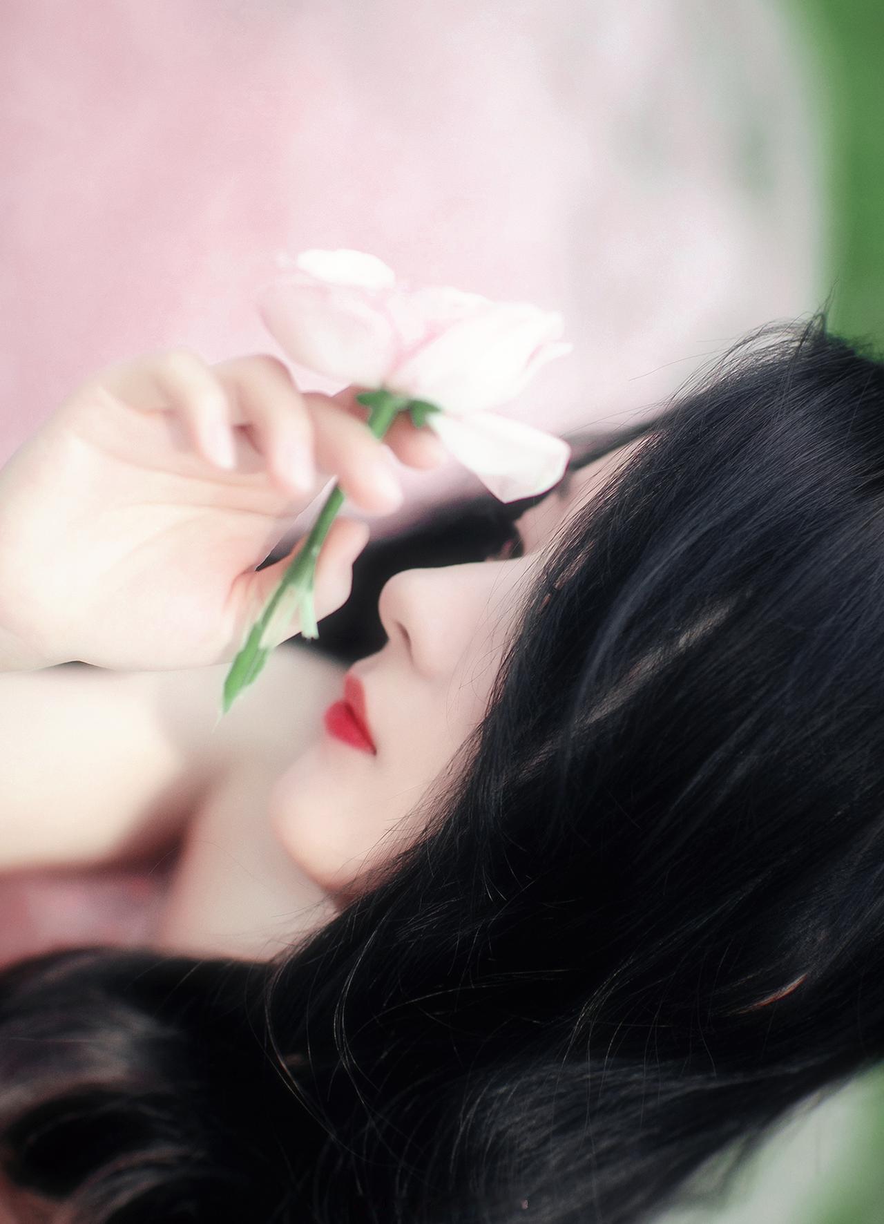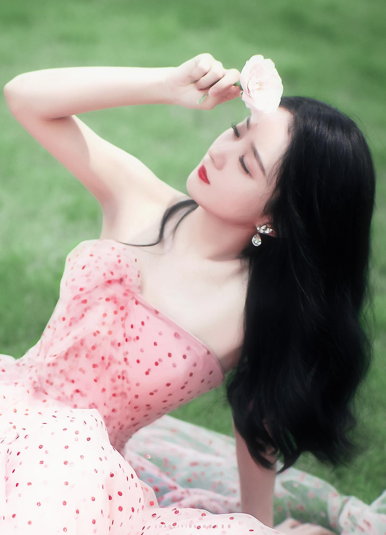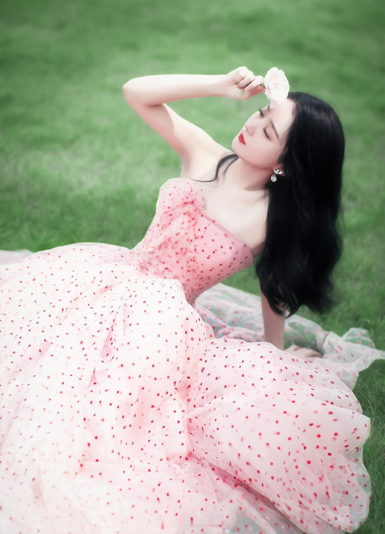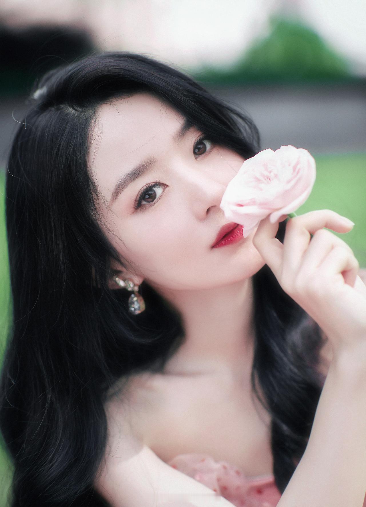 黑长卷发衬得眉眼愈发灵动,淡粉纱裙与玫瑰相映成趣,每一张都藏着春日的美好。