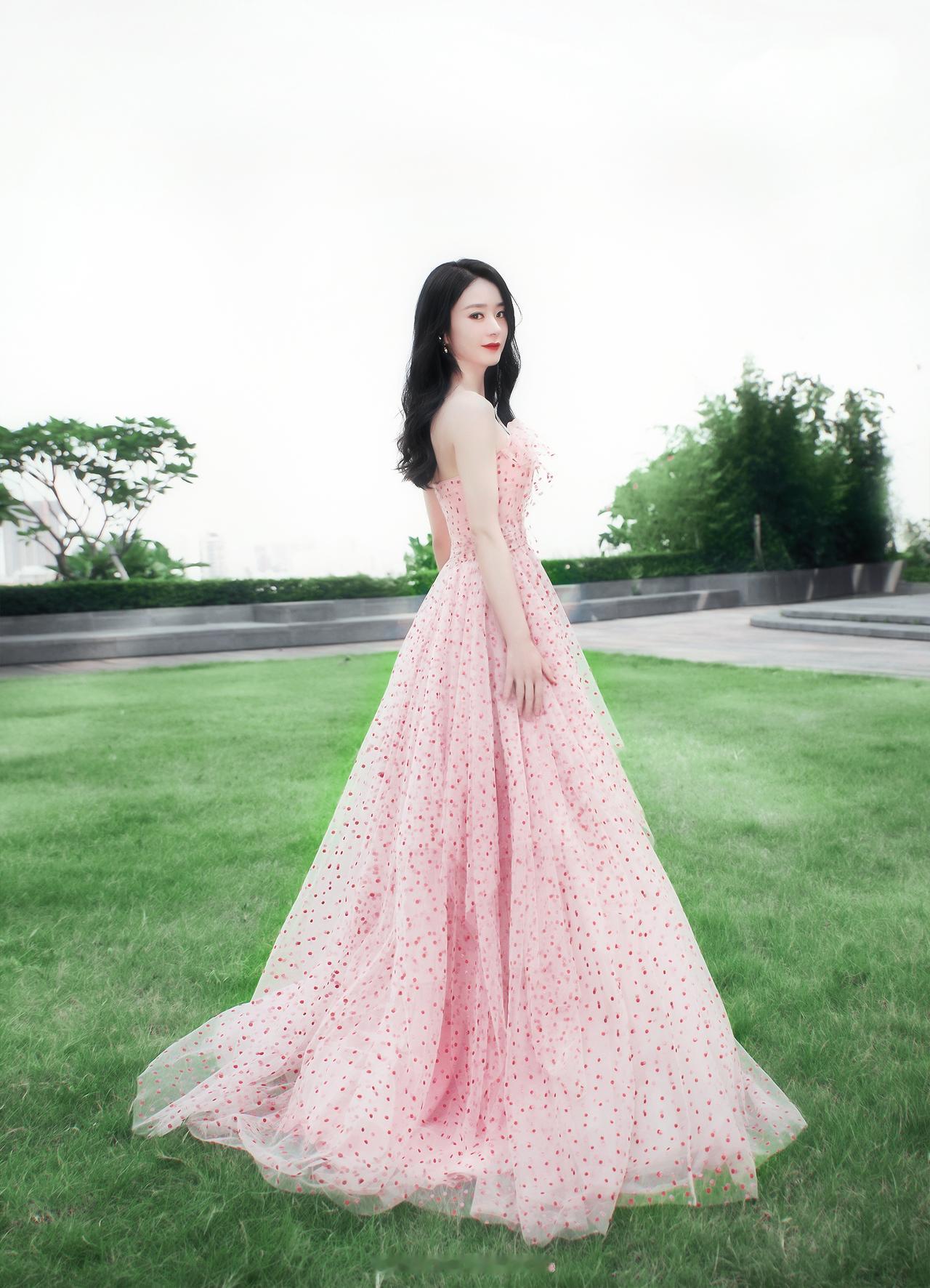 在绿意盎然的草坪上,她就是春日本身,是独属于赵丽颖的浪漫与惊艳。
