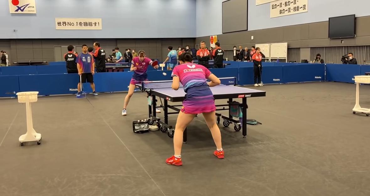 早田希娜与张本美和正在一起训练,