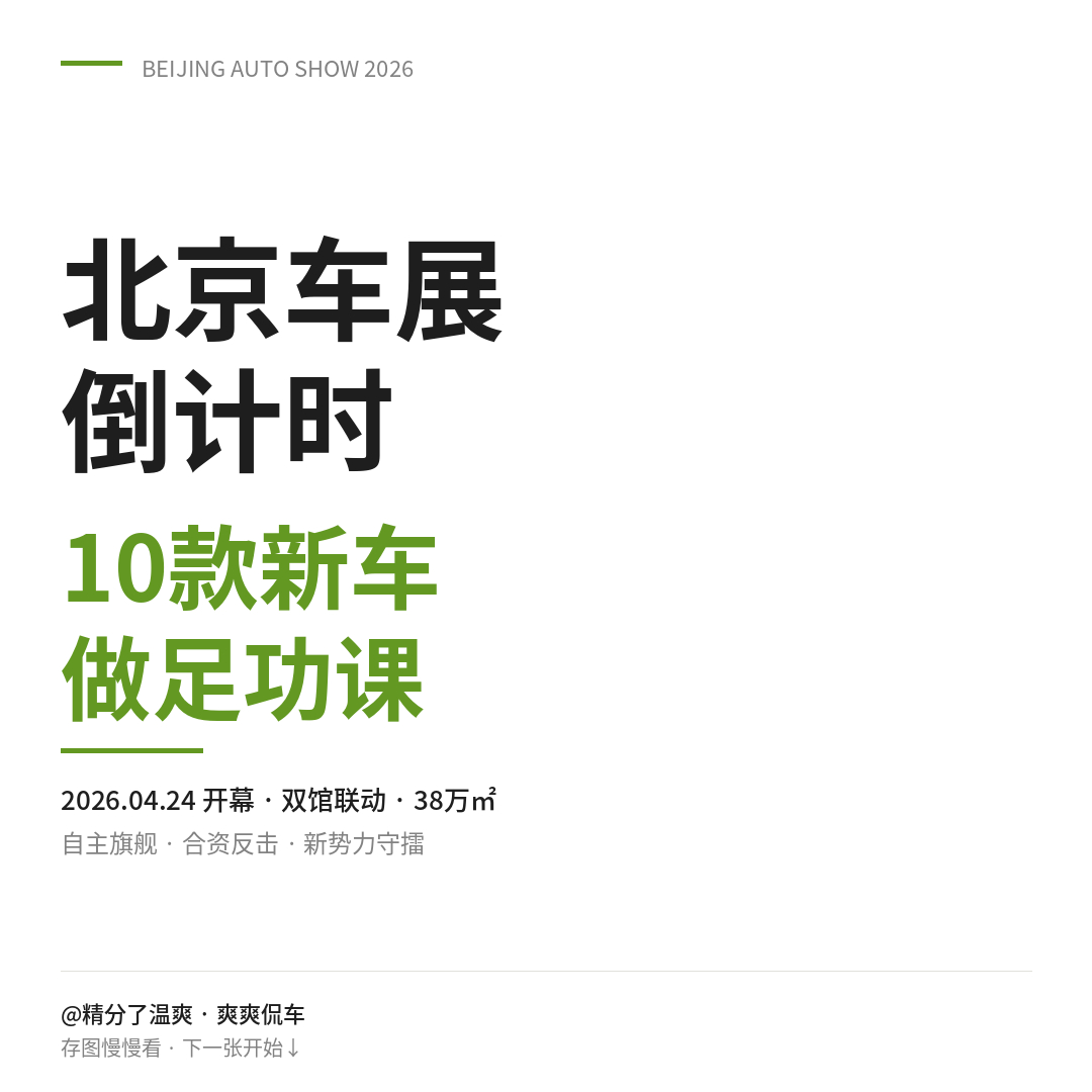 距离北京车展开幕还有10天。我把10款必看新车的功课做完了,11张图存一下,慢慢