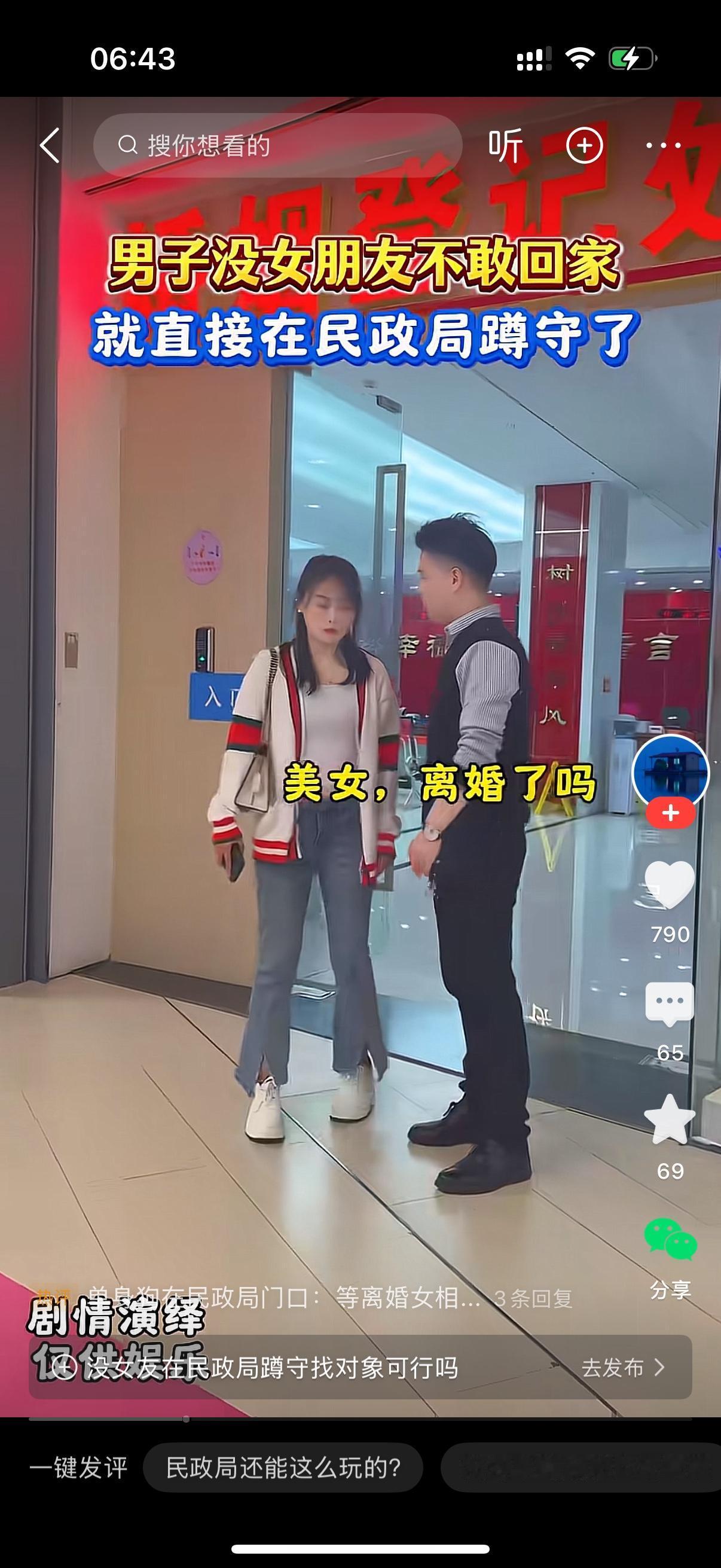 男子没有女朋友,不敢回家。他突发奇想,在民政局门口蹲守那些离异妇女。男子见到一个