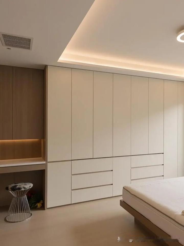 衣柜柜体用无节松木,门板用封闭漆加门框设计。