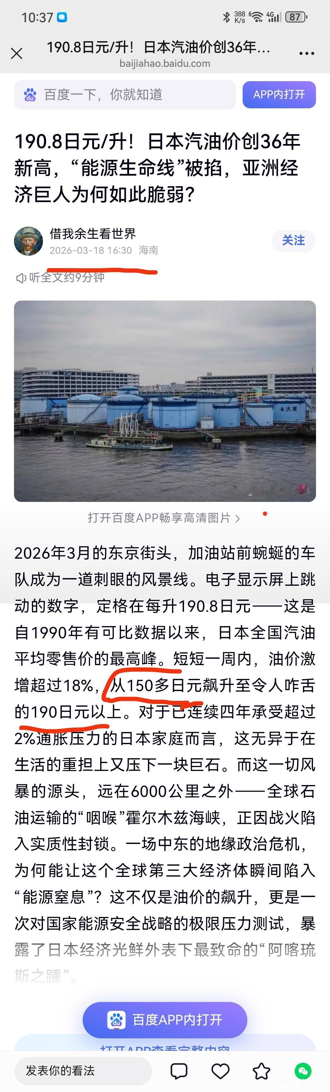2月底之前 国际油价60美元一桶 国内油价7块 世界第一产油国美国油价2.75美元/加仑 折合人民币5块钱一升,德国1.6欧元一升,日本150日元一升,老挝6块钱人民币一升。昨天国际油价100+美元一桶,涨幅70%,波斯湾的现货石油价格更是170美元一桶了。国内油价7.5元,涨幅7%,把明天涨幅1.5元算上 9块钱,涨幅28%,就算明天涨2块 卖9.5元一升,涨幅35%。日本235日元一升,折合人民币12块钱一升,涨幅57% 美国部分州5.55美元/加仑(各州价格不一样,5.55算贵的,但是真实存在),折合人民币10块钱一升 涨幅100%,德国2.35欧元一升,折合人民币18块钱一升 涨幅47% 老挝13.5元一升 涨幅120% ,我说一句中国的涨幅全球算低的应该没问题吧?别说什么人家挣美元花美元的,中国是全球最大的石油进口国,进口别人的东西,定价权就在别人那 不会因为你穷 你工资低就得赔本卖给你。还有那些说国内油价里有税,油涨税不涨的文盲,哪个国家油价里没有税?别人怎么涨的?中国的油价里面除了1.52元每升的消费税是固定的,其他的增值税企业税城建税教育附加费都是跟着油价按比例涨跌的,现在油价7.5也好 9.5也好,那都是国家帮人民在压着,偷着乐吧