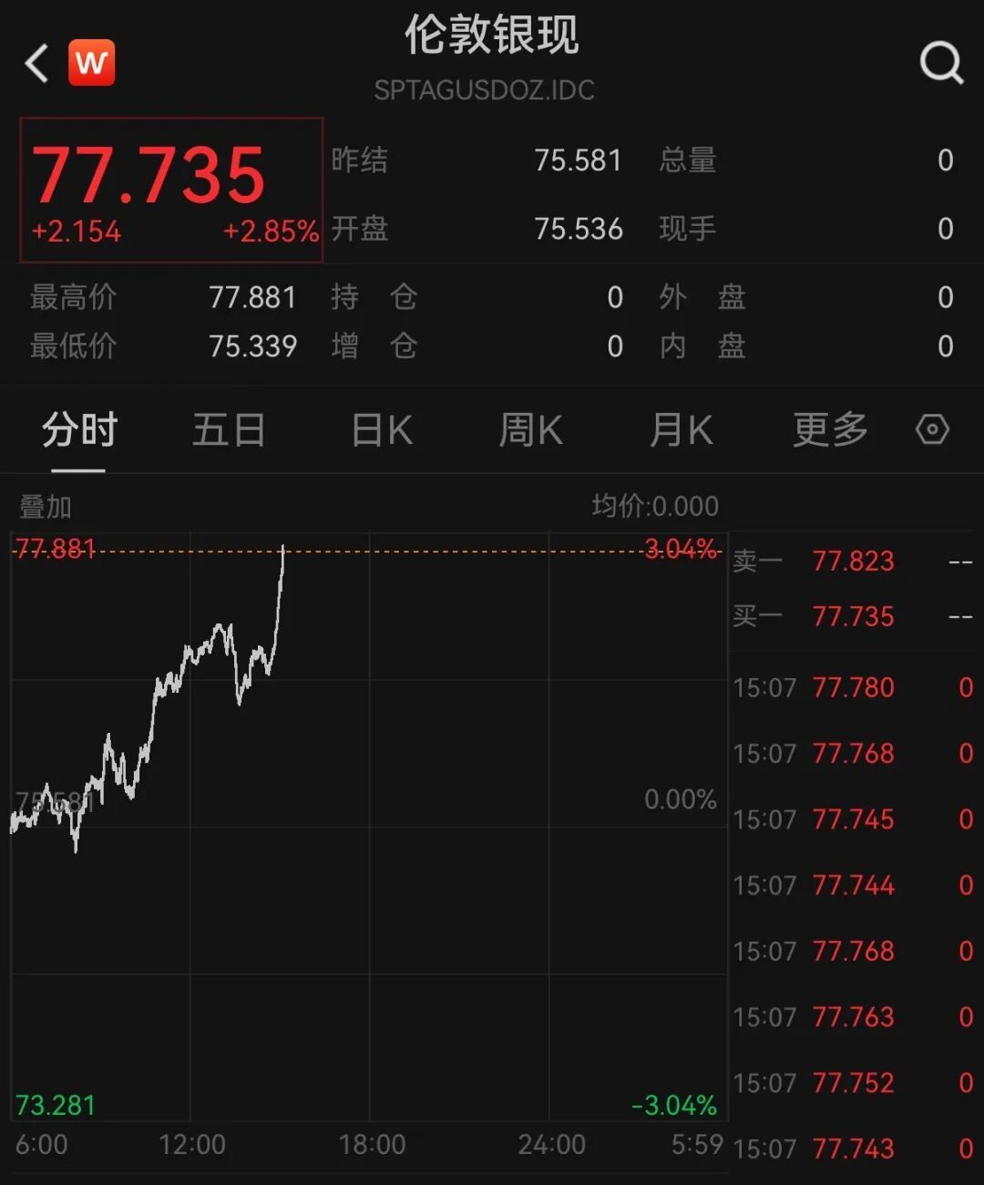 #黄金白银短线拉升##金银短线走高# 4月14日盘中,金银短线走高。截至发稿,现货黄金日内涨超1%,现报4792.37美元/盎司。现货白银现涨2.85%,现报77.735美元/盎司,此前一度涨超3%。
