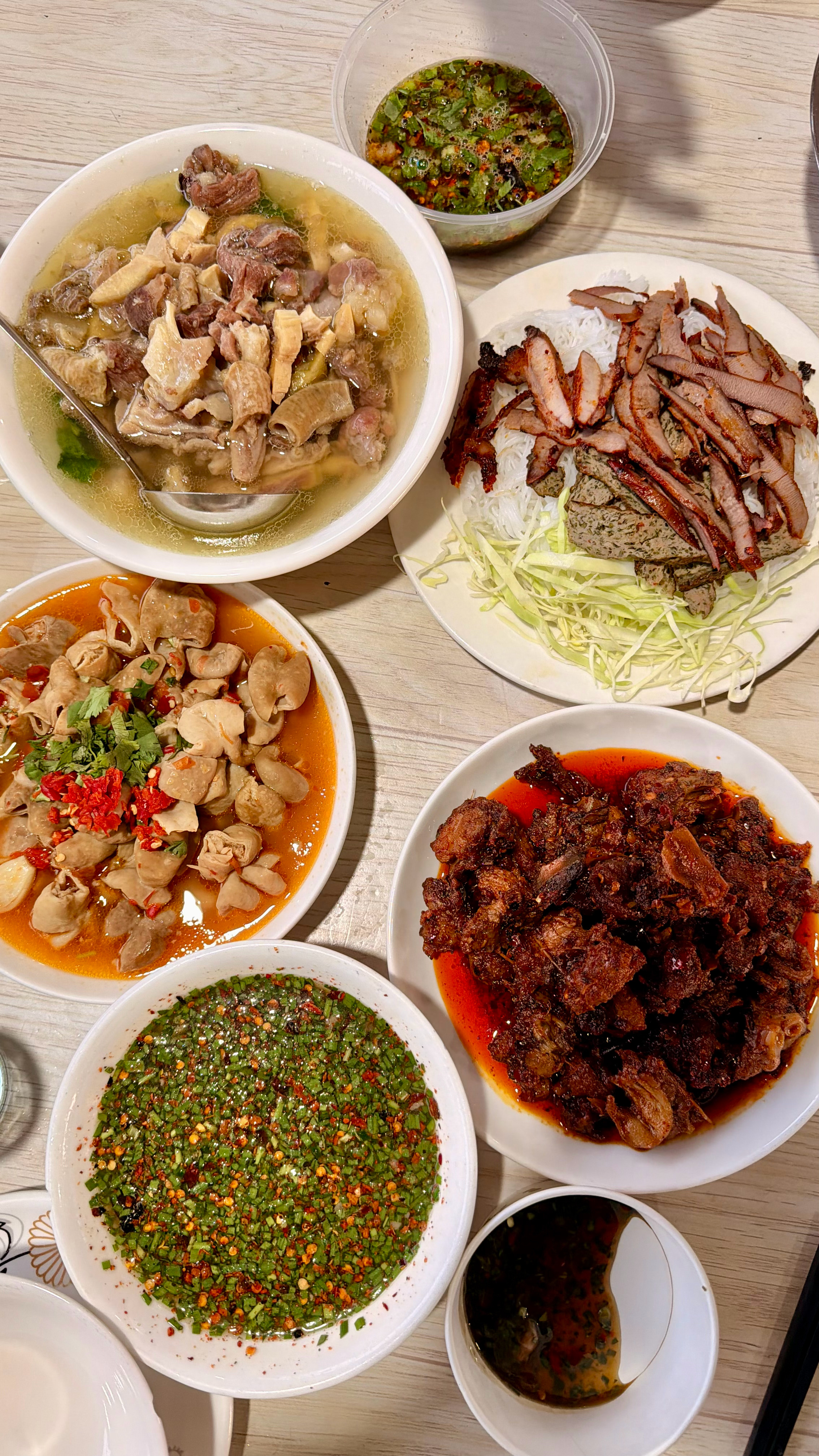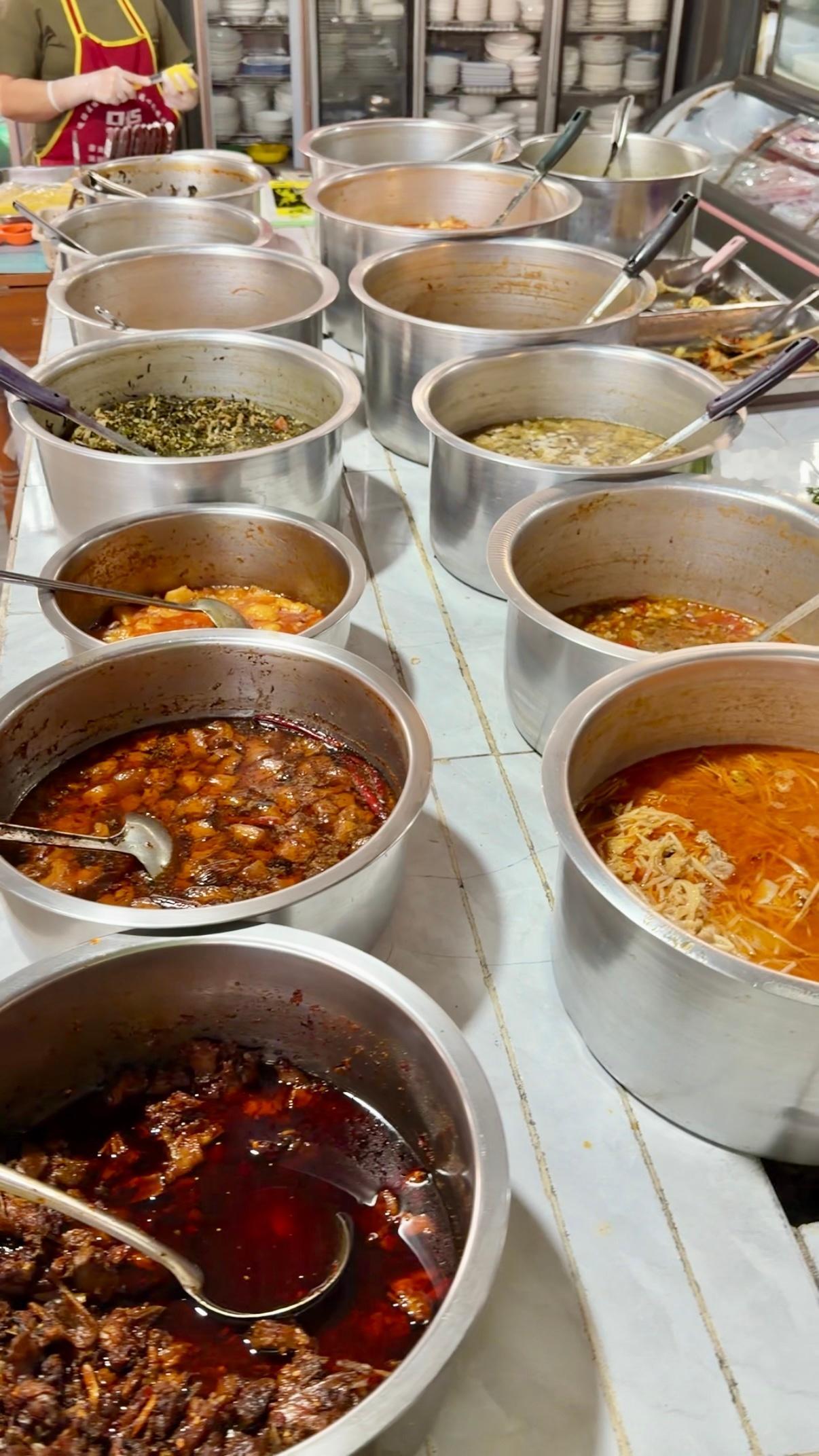 🔥在瑞丽藏着一家50年的傣味老店,就躲在傣族村子里!之前姐东小学搬过来的。没有花里胡哨的装修,就是最接地气的市井烟火气。大铁锅炖着酸肥肠、牛扒呼、酸木瓜鸡、酸笋牛肉……还有诱人的烤舌头,想吃啥自己选!环境不讲究,简单粗暴但味道绝对好吃,一口下去全是地道傣族味,价格还很实在,我们三个人吃了113,吃撑了没吃完…来瑞丽想尝老牌傣味,这家岩亮姐东撒撇店,值得你专门跑一趟~ 瑞丽美食云南旅游攻略君豆花名宿吃货团 瑞丽·岩亮姐东撒撇店