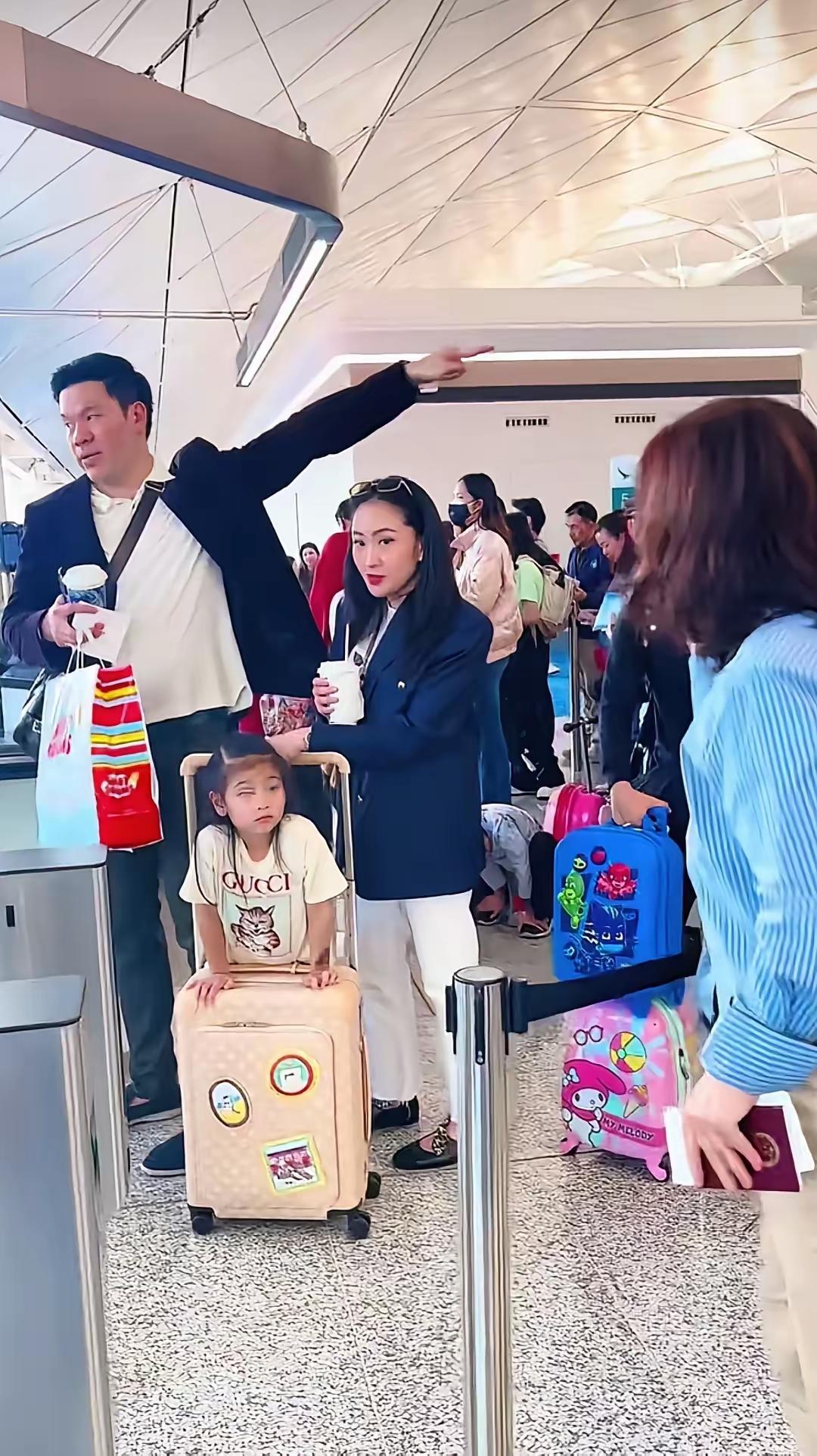 佩通坦携家人在机场现身,褪去总理光环,化身平凡母亲。她身着干练西装,一手牵着女儿,一手高举指向远方,神情自信而从容。丈夫在旁守护,女儿坐在印有可爱贴纸的行李箱上,穿着Gucci童装,显得乖巧又时尚。一家人在繁忙的机场中展现出温馨默契,既有职场女性的飒爽,又有为人母的柔情,诠释了事业与家庭的平衡之美。