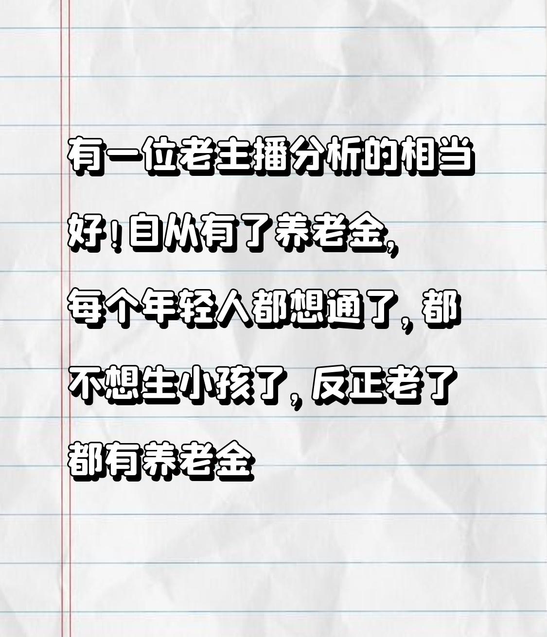 现在很多年轻人不想生小孩,老主播说有养老金后大家都想通了,还真有点道理。以前“养