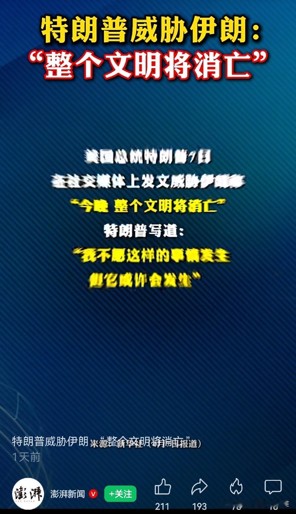 伊朗几千年的文明,会被一个仅有两百年历史的国家毁灭?特朗普真是欺伊太甚,竟然威胁