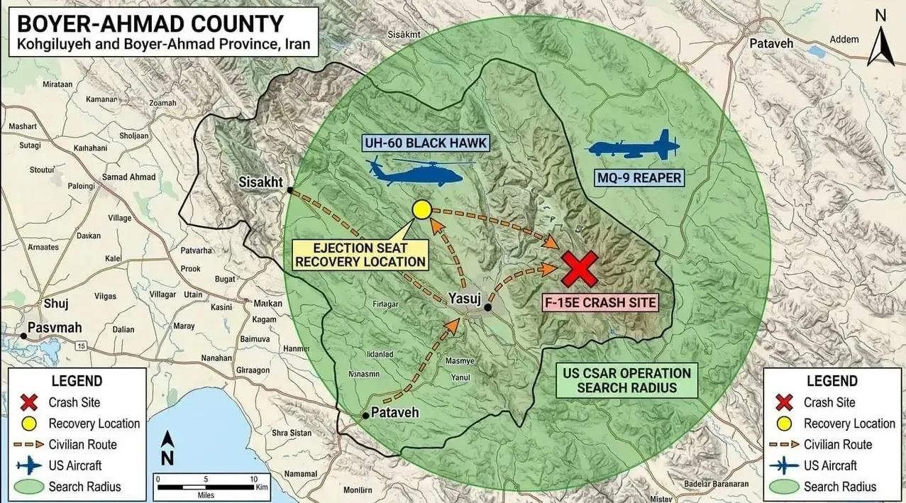 美军一架F-15E战斗机在伊朗境内被击落,机上两名机组人员跳伞逃生,其中第二名飞行员落入伊朗伊斯法罕南部区域,伊朗方面立刻展开全方位围捕,这场抓捕行动足足持续了48小时,美国最后是把飞行员给救回来了,可是也付出了惨痛的代价,多架战机被摧毁,特朗普声称这是美国史上最大的搜救行动。