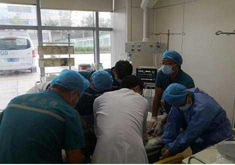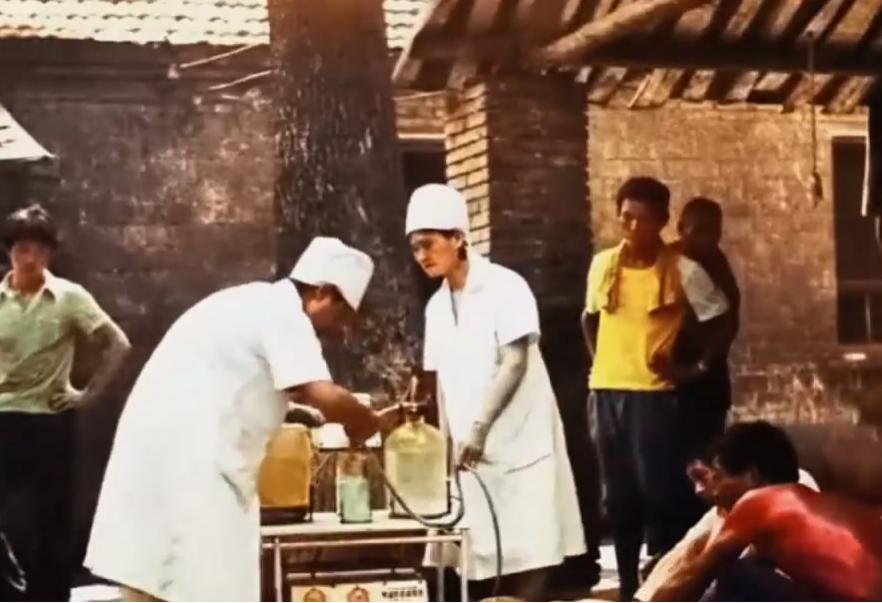 【1986年真实照片,两名身穿白大褂的医生,正专心为喝农药的妇女洗胃】