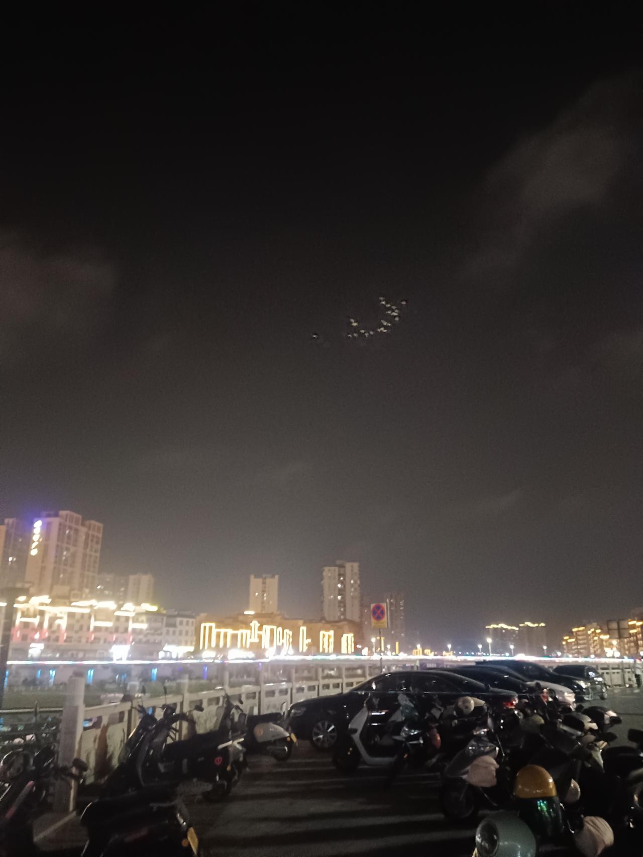 急忙取手机欲定格此景,只奈夜色深沉、像素有限,只留得一张模糊相片。虽有憾,然雅兴已至,遂吟一句: