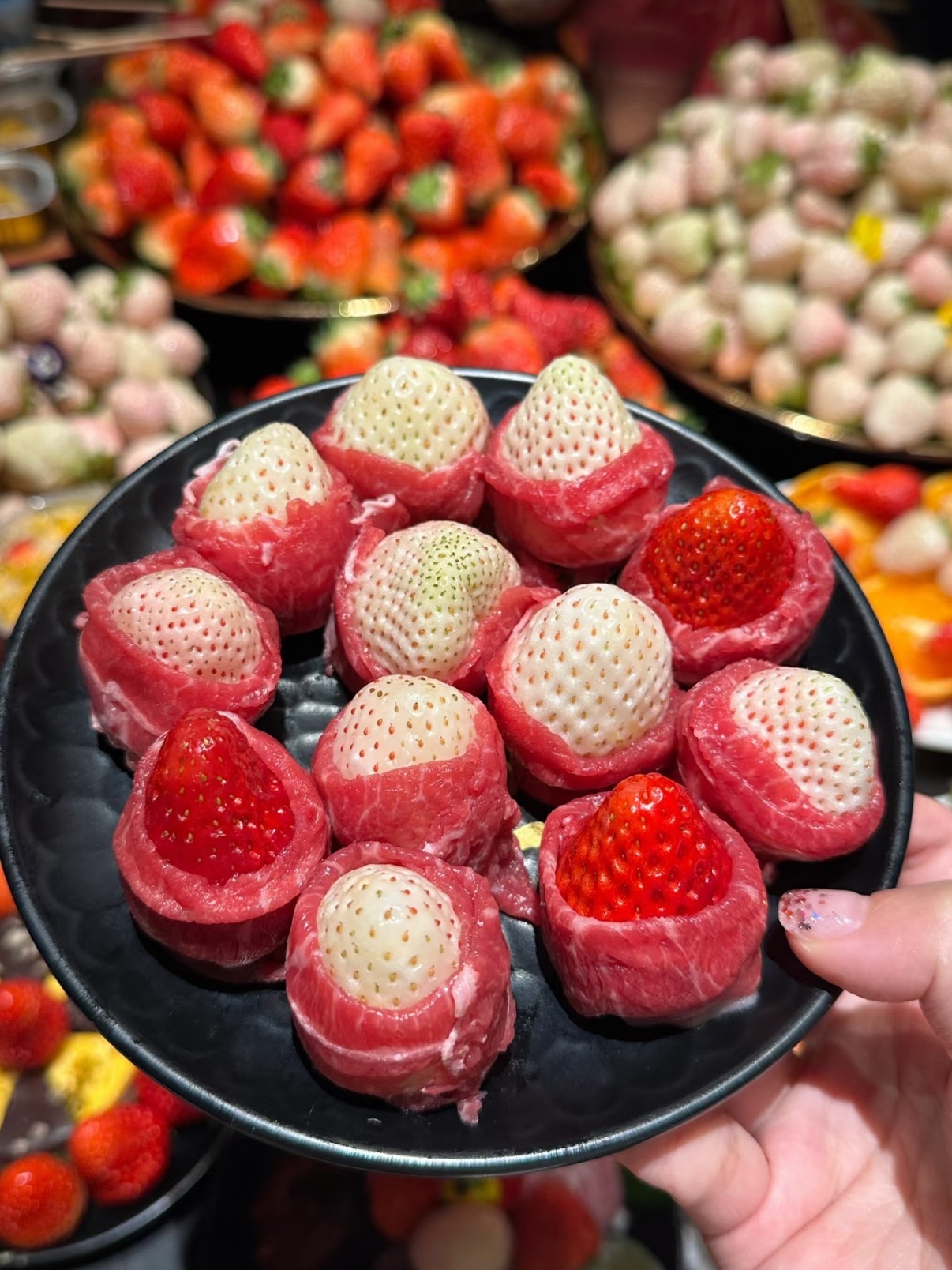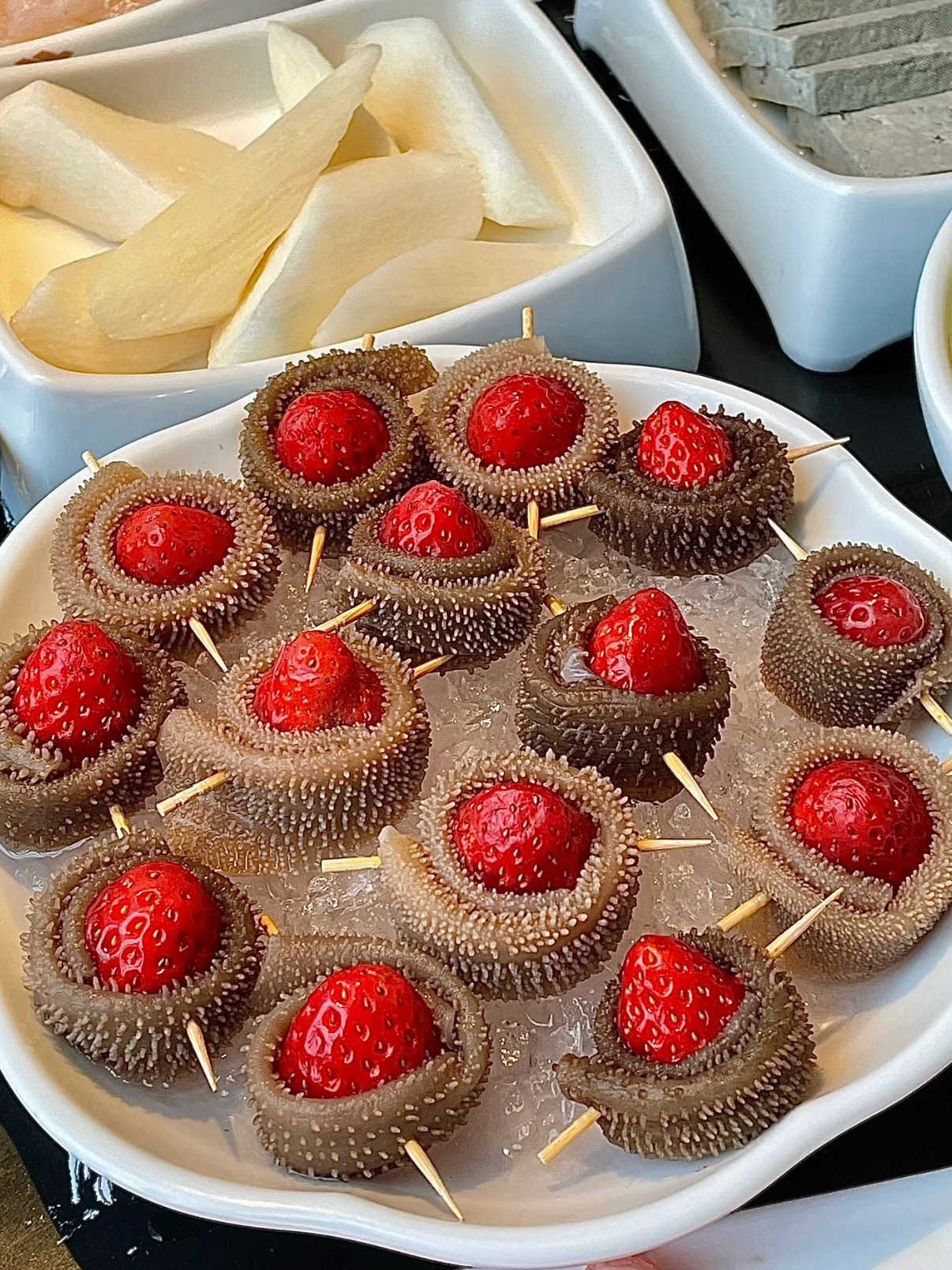 毛肚草莓火锅把四川人整沉默了草莓毛肚、和牛草莓、荔枝毛肚、菠萝蜜虾滑、青椒虾滑、