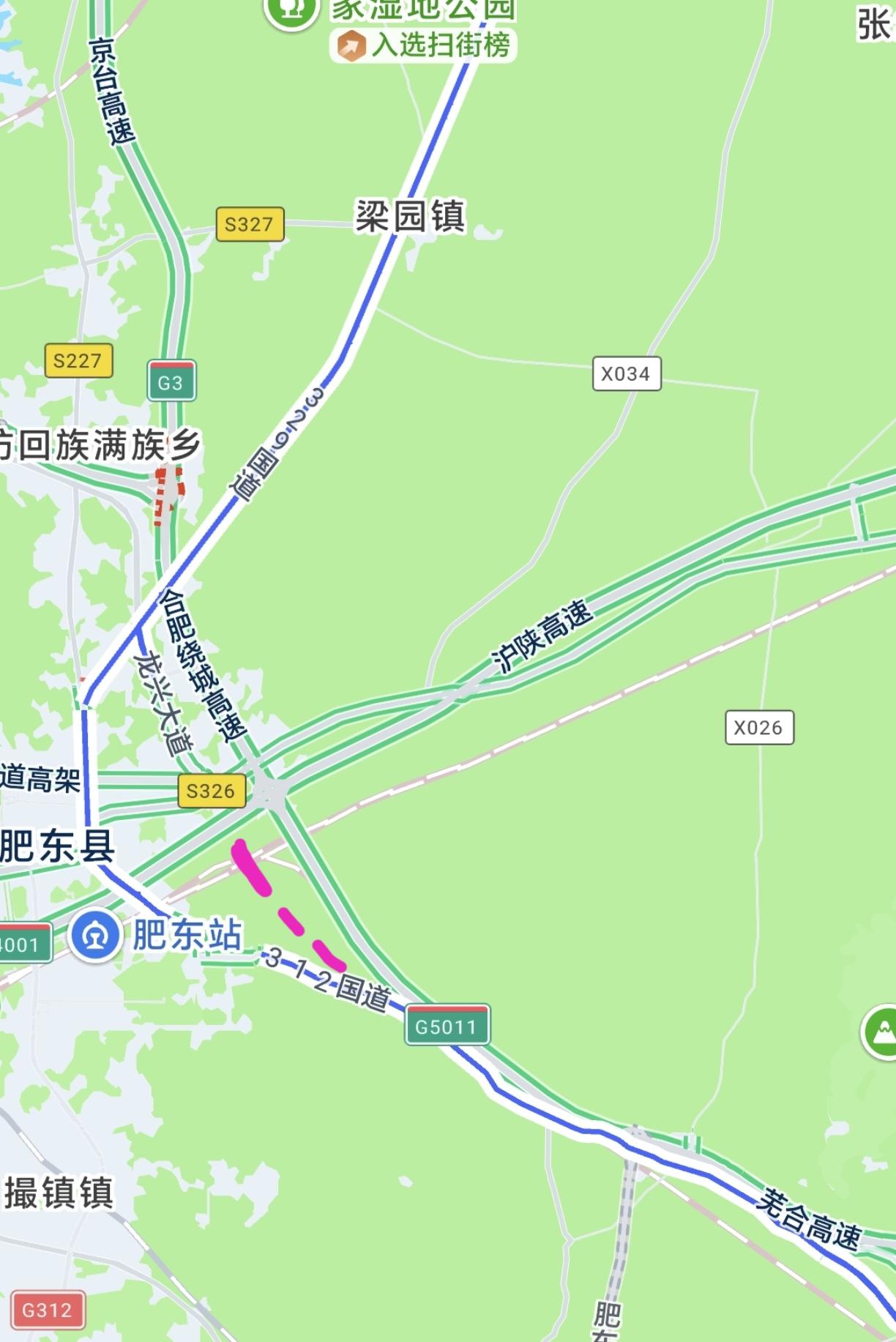 329国道马厂至合浦段,有部分是和龙兴大道共线,也就是下穿铁路那一段。最近,实地看了大榆树村那一段,有合杭高铁、宁蓉铁路,还有正在建设的沪渝蓉高铁,我数了数有7座铁路桥——329国道改线这个拦路虎总算拿下,现在就剩下上跨沪陕高速工程了。