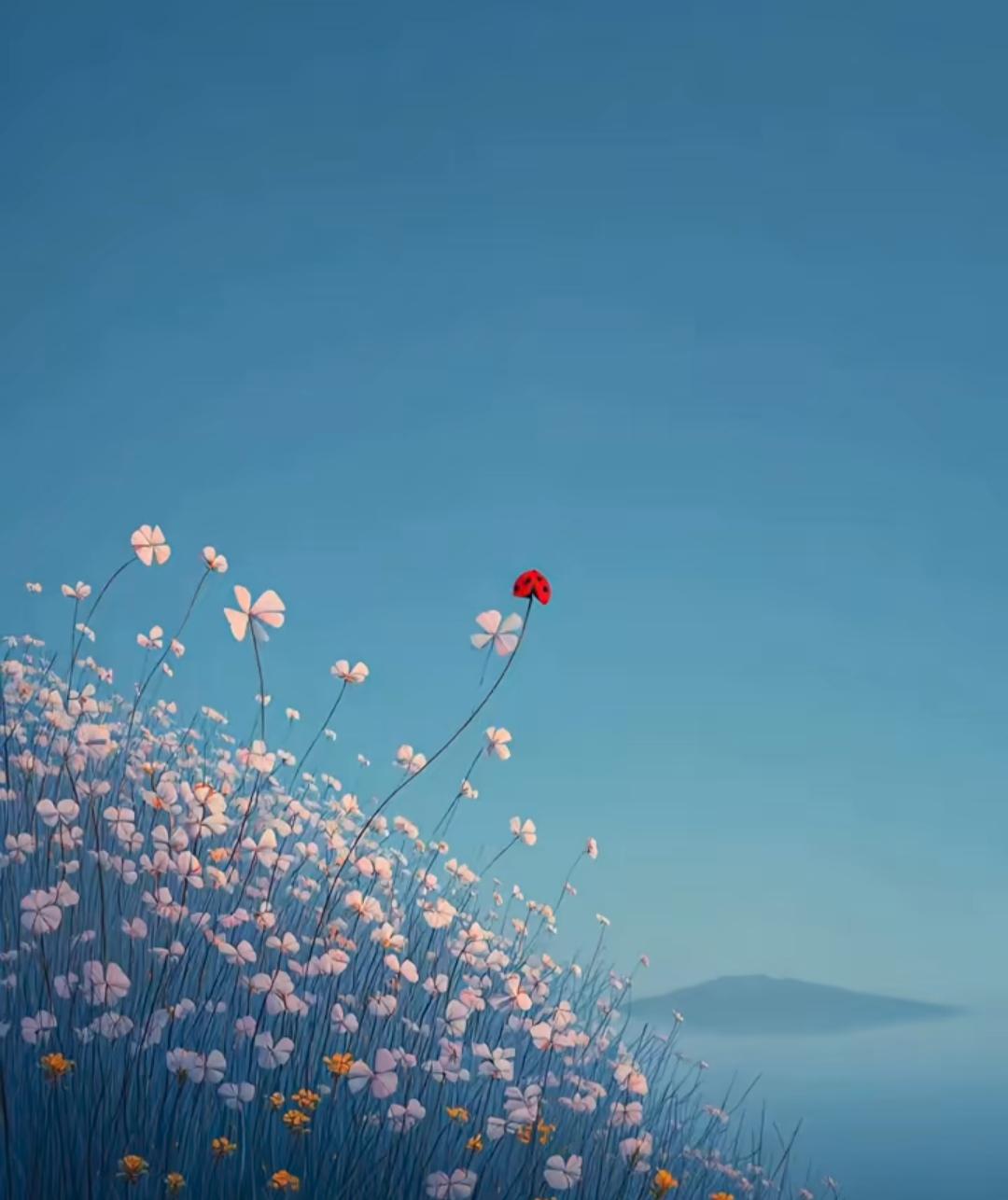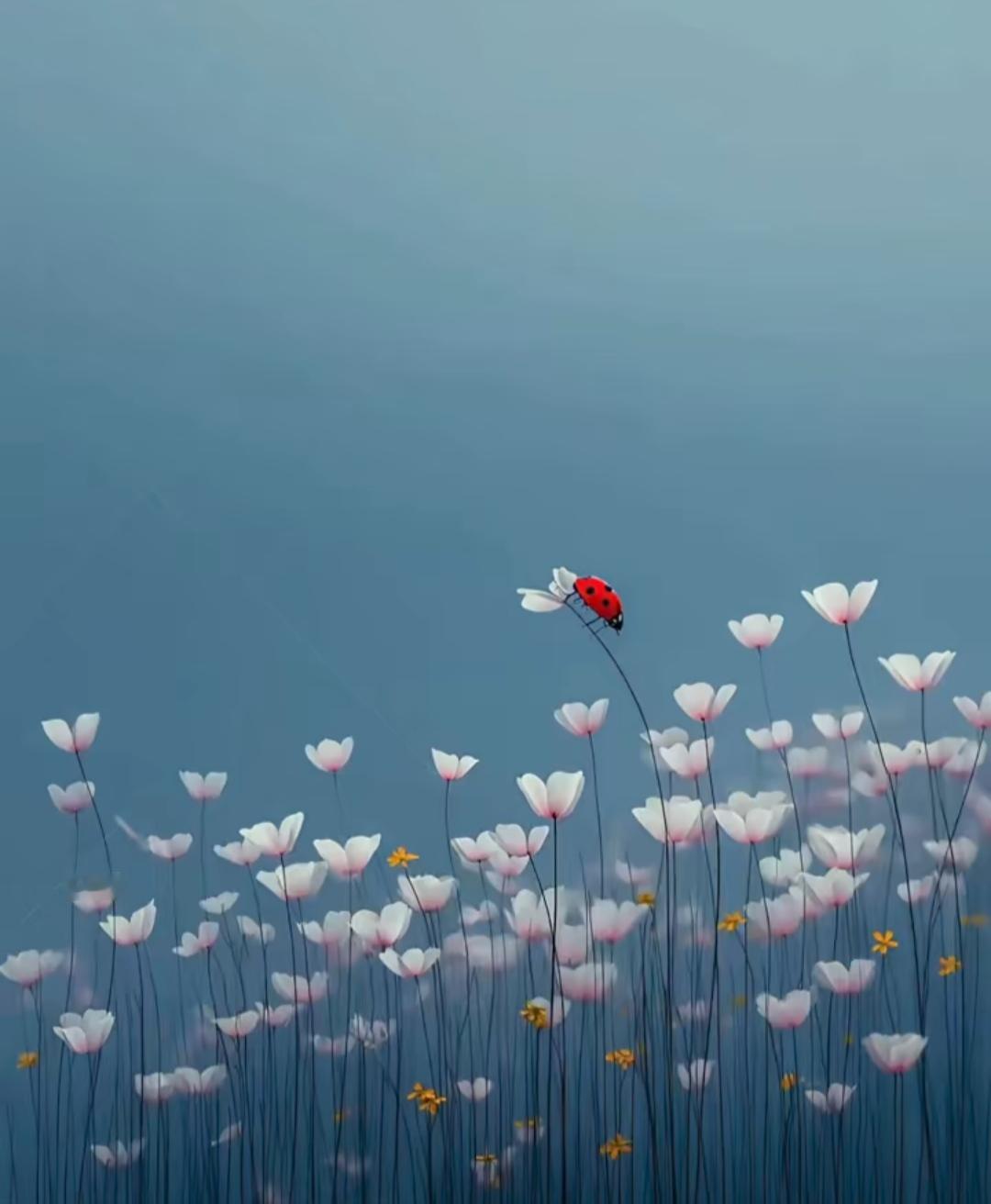 虫意 · 天是淡彩纱 花摇细影斜 瓢虫栖一朵 静守漫韶华