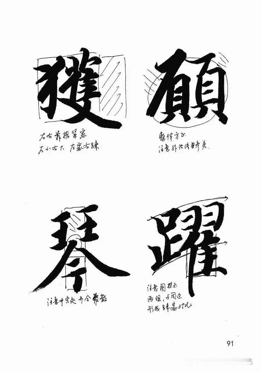 转:圆转,笔毫连续运动,写出的转角是圆的(如颜真卿)。