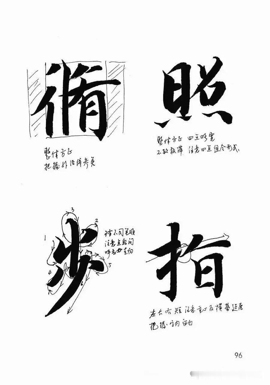 定义:行笔中微微调整笔锋的动作,甚至退一小步再进,目的是调回中锋。