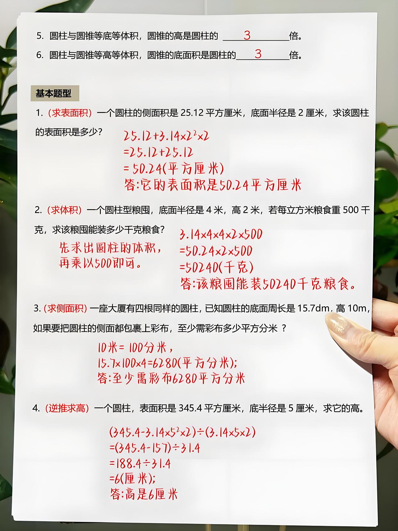 六下数学练习 数学六下练习 圆锥体积计算 六上数学题 圆柱体积计算 预习圆柱圆锥 圆柱表面积计算