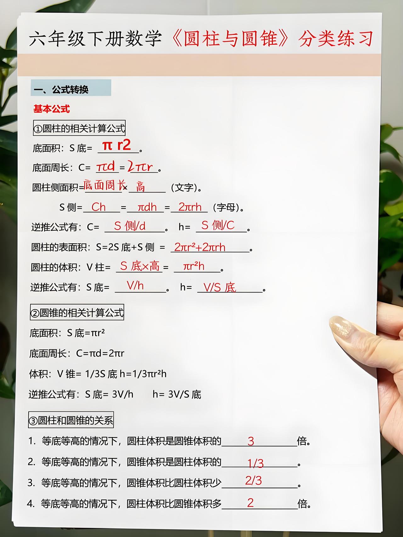 六年级下册数学:课本重点公式归纳解析+圆柱与圆锥的分类练习,收藏起来让孩子掌握牢固了,以后的考试才能立于不败之地!