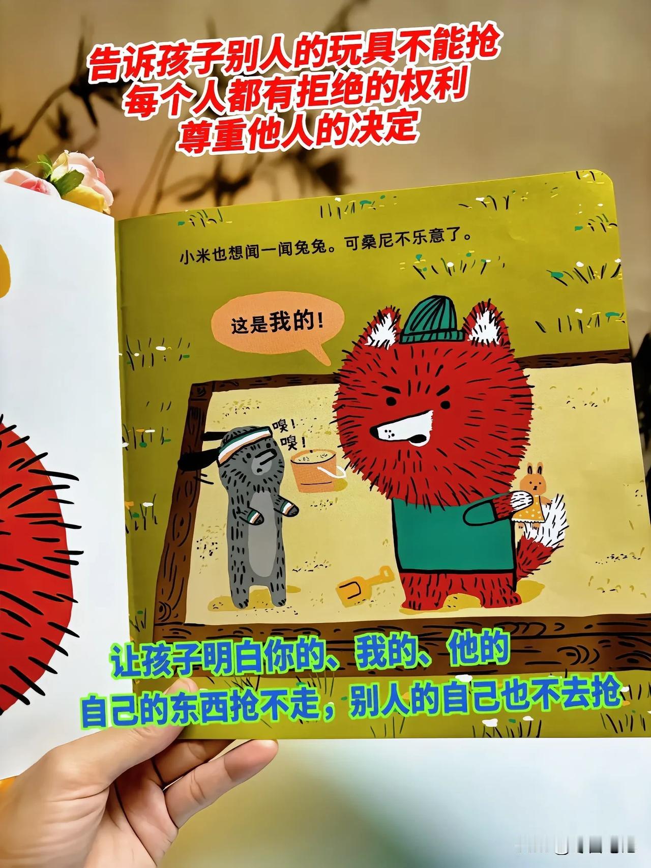 这个阶段的宝宝,对“你的”“我的”“他的”边界概念还十分模糊,却已经开始建立自我认知,通过“占有”物品来确认自己的存在感。抢玩具、护玩具的行为频发,本质是孩子不会用语言表达诉求,只能靠哭闹、争抢来捍卫自己的“领地”。此时家长的引导至关重要,强硬制止或一味说教只会适得其反,而选对绘本、通过亲子共读渗透物权概念,才是温和又有效的方式。