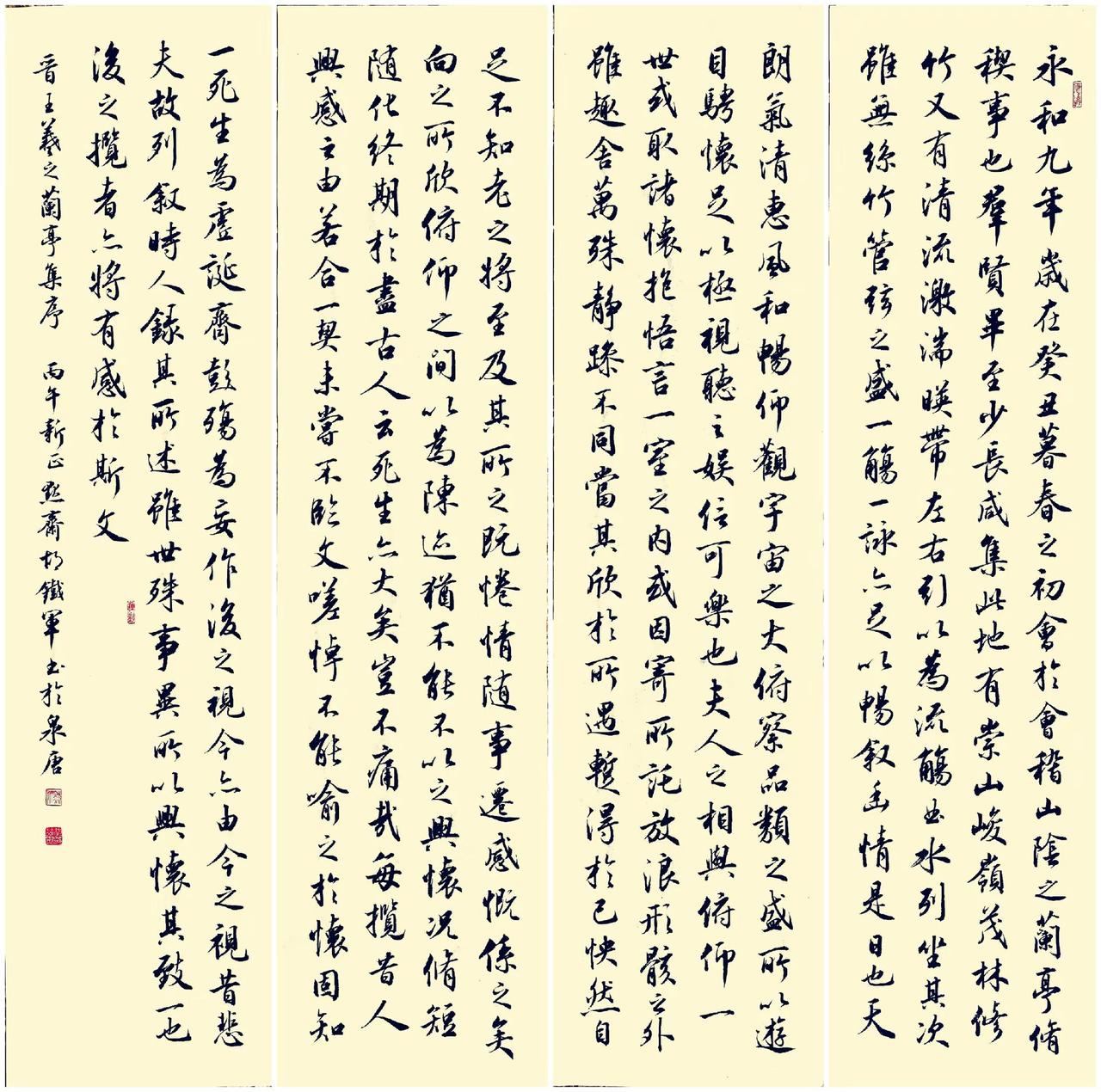《兰亭序》四条屏刚刚写好,喜欢的来!中华文化 书法艺术 汉字之美 原创书法作品