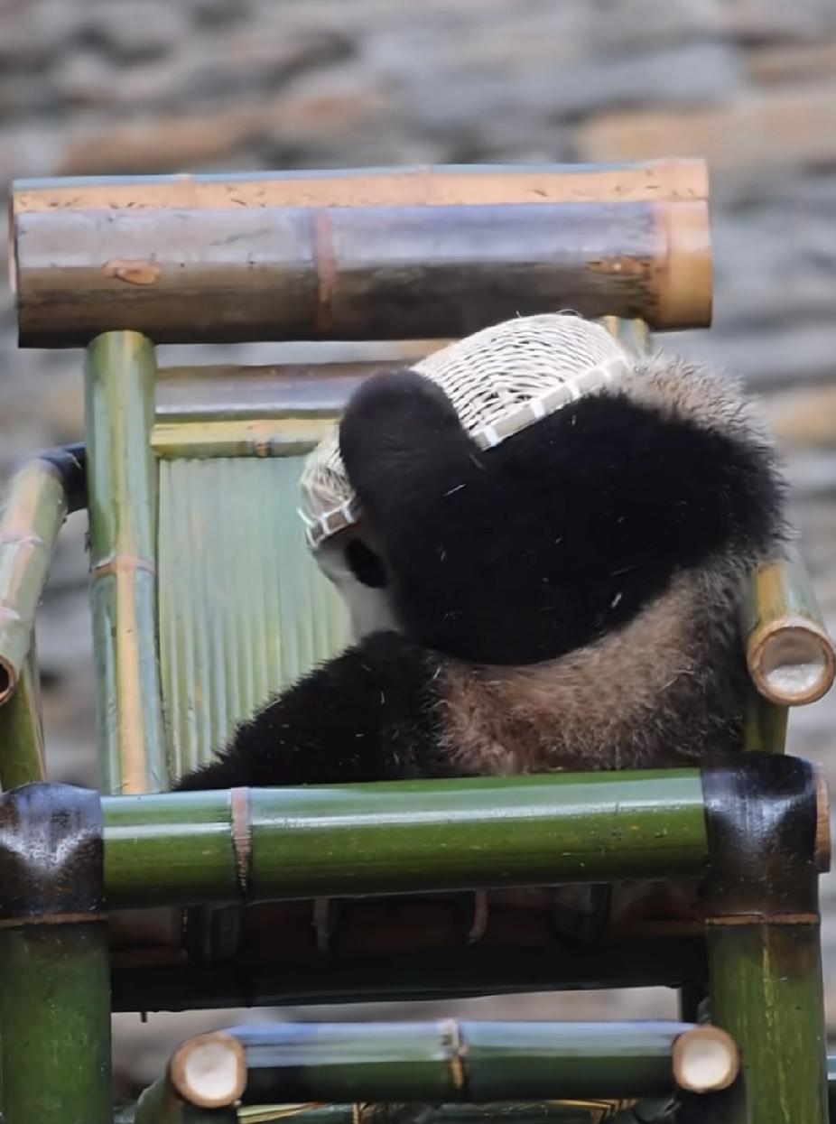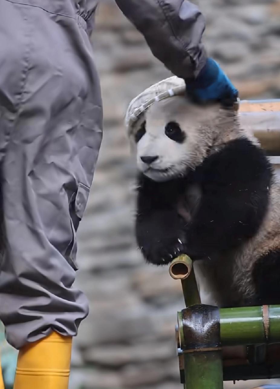 哪家奶爸这么可爱啊?随手就给崽崽扣了顶“帽子”,本来还生龙活虎精力旺盛的崽崽立马