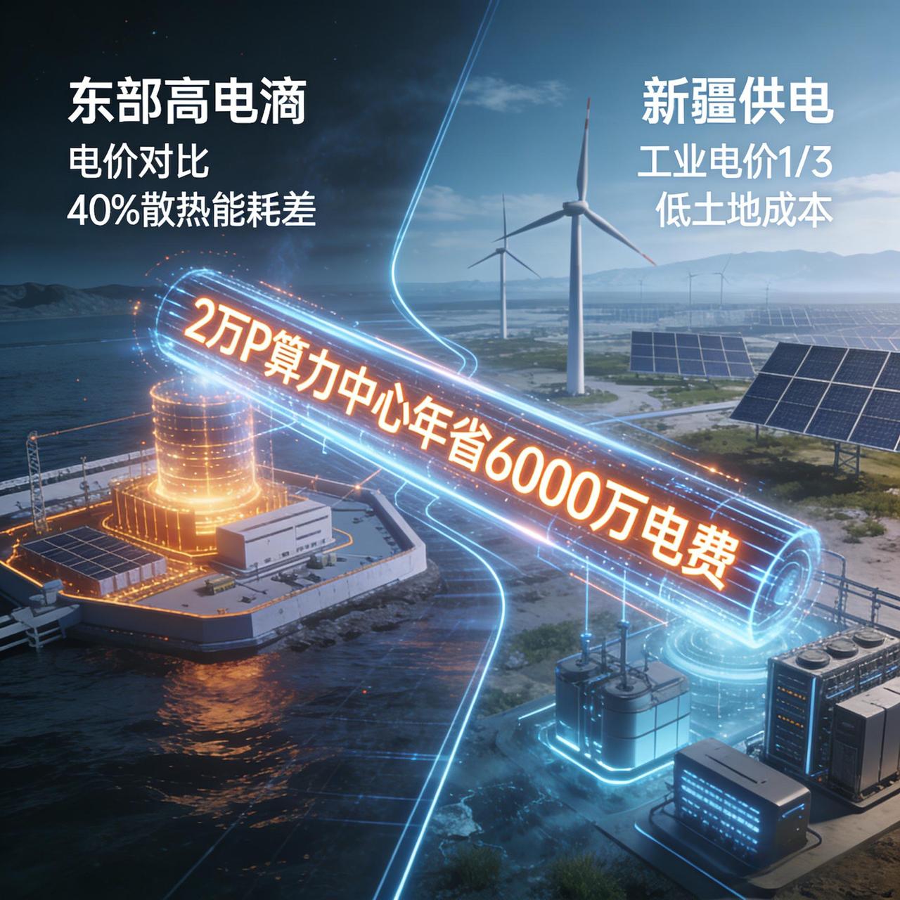 看似偏远的新疆,拥有无可替代的算力先天优势:风电、光伏新能源储量全国领先,用电成本仅为东部沿海的三分之一,万P级算力中心每年可省电费超3000万;干燥凉爽的戈壁气候,让数据中心散热能耗直降40%,大幅降低运营成本;广袤土地更是零成本承载大型算力基地,扩建空间毫无限制。