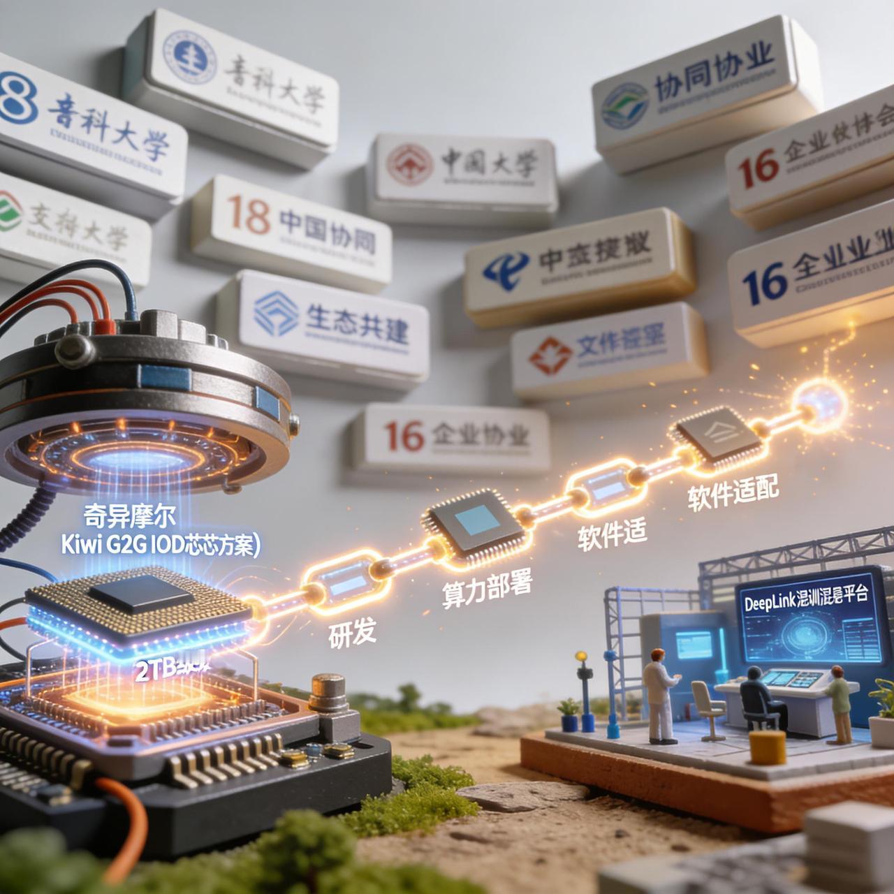 这份白皮书绝非一纸空谈,背后是8所国内顶尖高校、16家行业核心伙伴的合力攻坚,凝聚了全产业链的智慧与力量。从上游芯片研发、产业链搭建,到中游算力部署、软件适配,再到下游学术研究、行业落地,全环节打通、全领域协同,彻底打破了技术壁垒与行业隔阂。