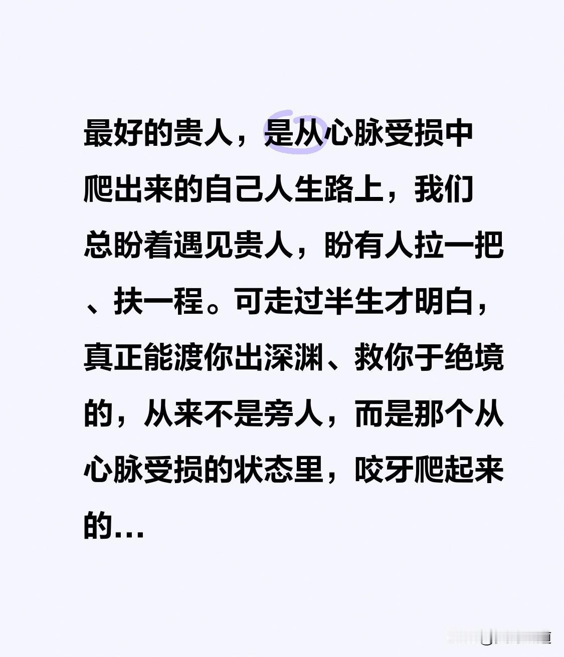 最好的贵人,是从心脉受损中爬出来的自己 人生路上,我们总盼着遇见贵人,盼有人拉