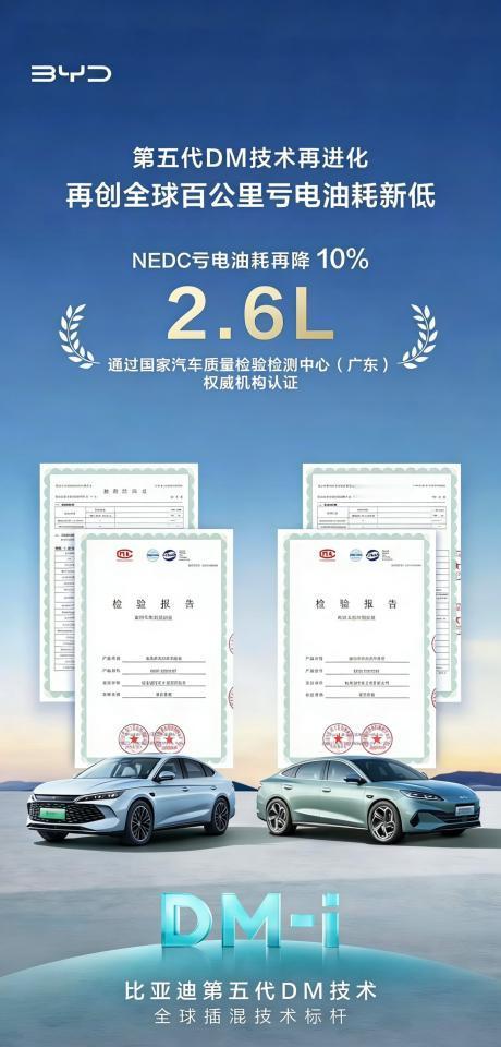 第三,长途出行时,比亚迪插混的百公里亏电油耗低至2.6L。这是全球最低水平,算下来每公里油费才0.23元,低到不可思议。