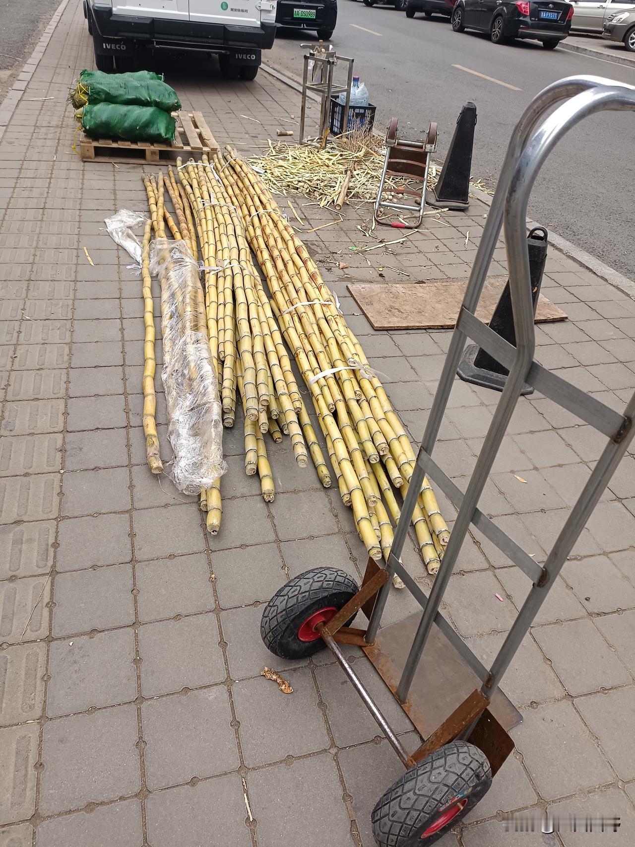 黄色甘蔗特长了 今年出售的甘蔗多数为黄色。往年出售以紫红色甘蔗为主。 今天目睹的