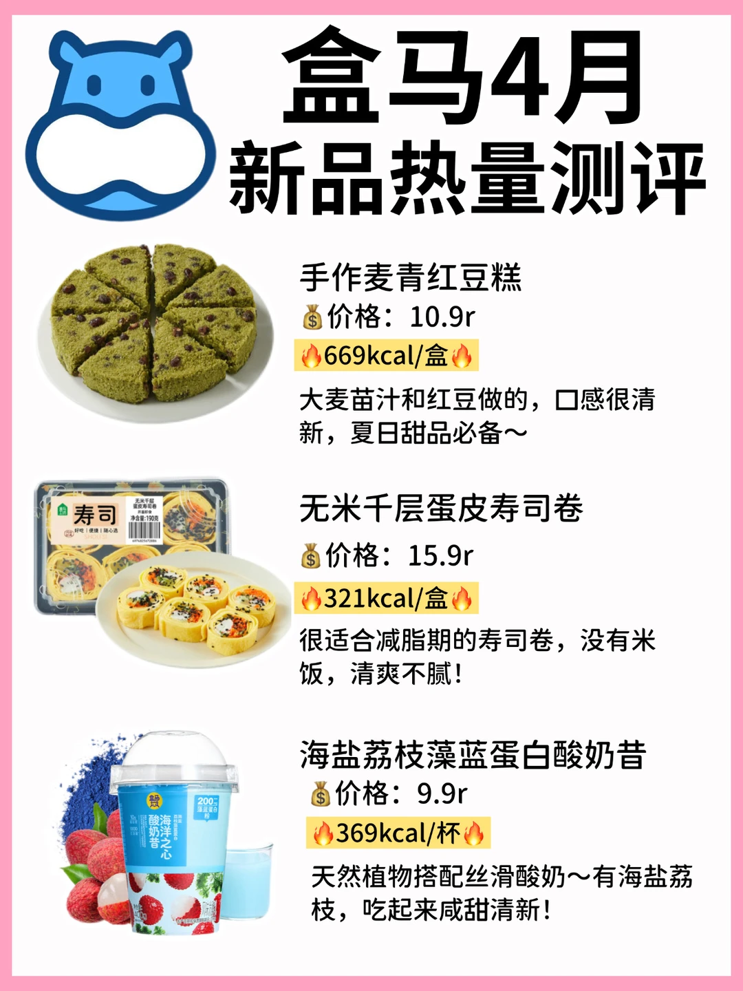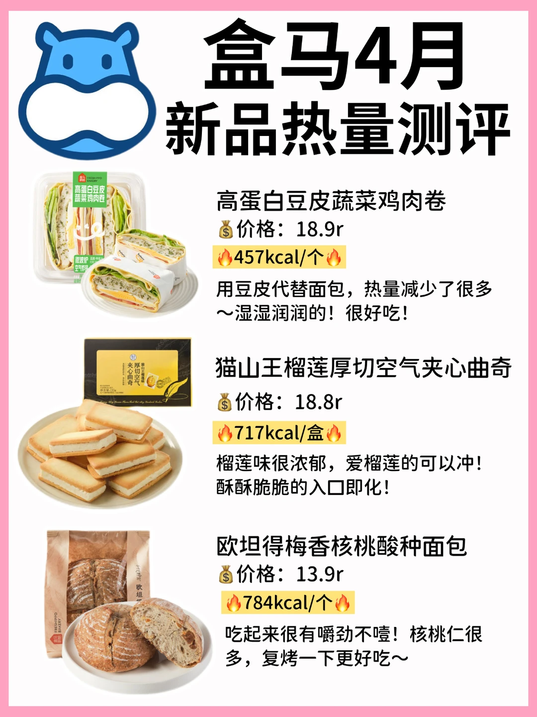🔥今天给大家整理出来了4月盒马烘焙甜品新品热量减脂期必看㊙️选对不长肉[暗中观察R]减脂期想吃盒马烘焙新品姐妹收藏哦~