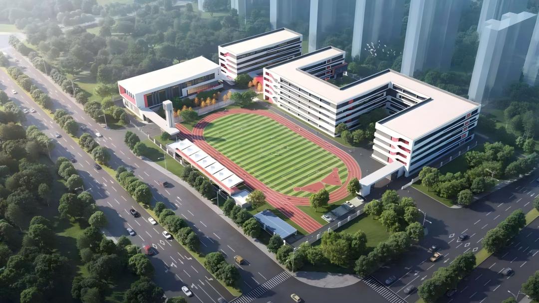 截至目前,项目教学楼主体结构已全面完工,综合楼施工正全速推进,田径场看台主体结构同步搭建中。