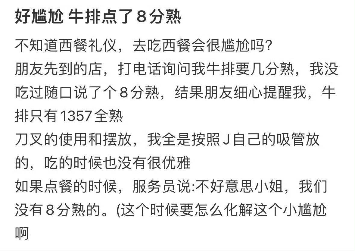 牛排点了八分熟好尴尬