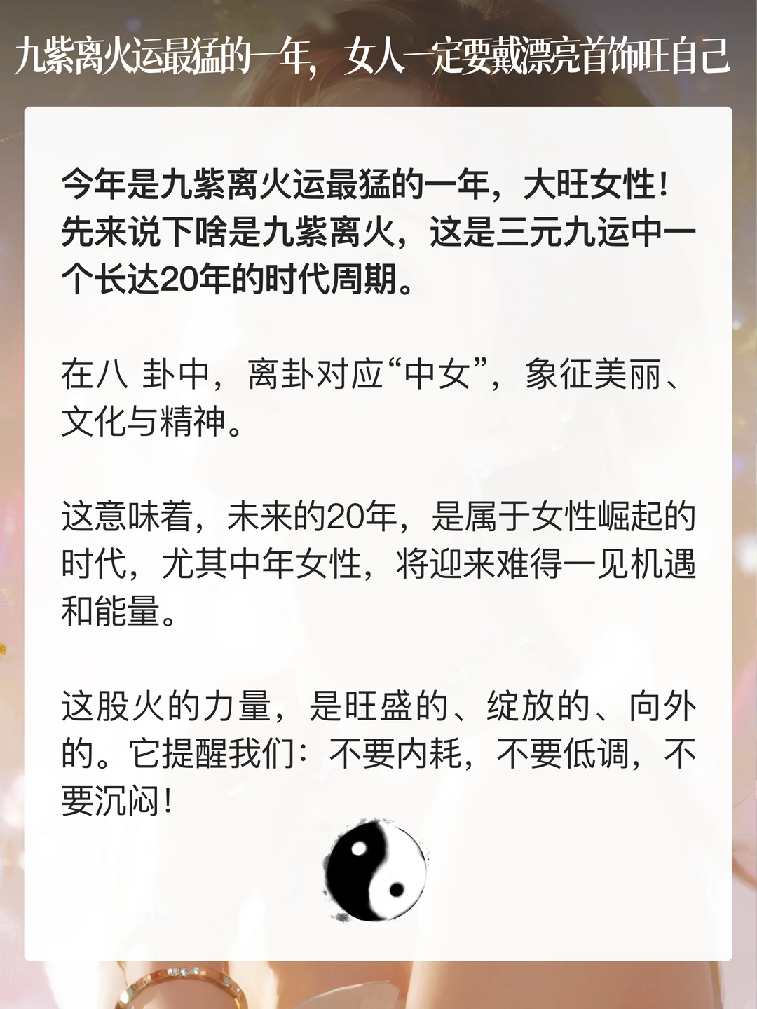 今年是九紫离火运最猛的一年,大旺女性!