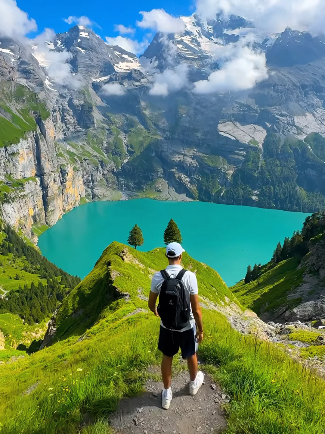 🗺️路线:从Kandersteg小镇乘缆车,可选轻松环湖或挑战全景路线