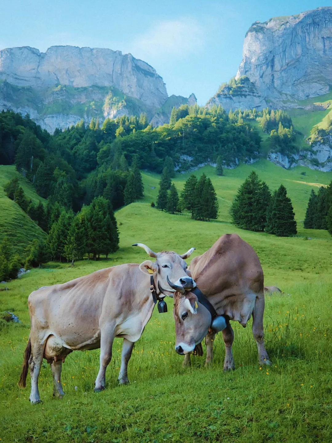 相比前三条的壮丽,这里更显宁静治愈。湖水倒映着尖耸的雪山,广阔的牧场延伸到湖边,沿途遇到的牛群比游客还多。充满了阿尔卑斯最原始的生活气息。