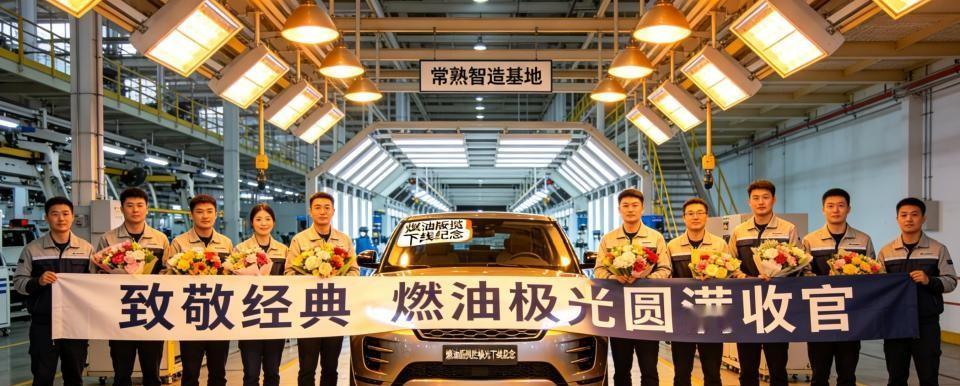 2026年3月31日,常熟工厂。 最后一辆燃油版揽胜极光慢慢开下生产线。在场的