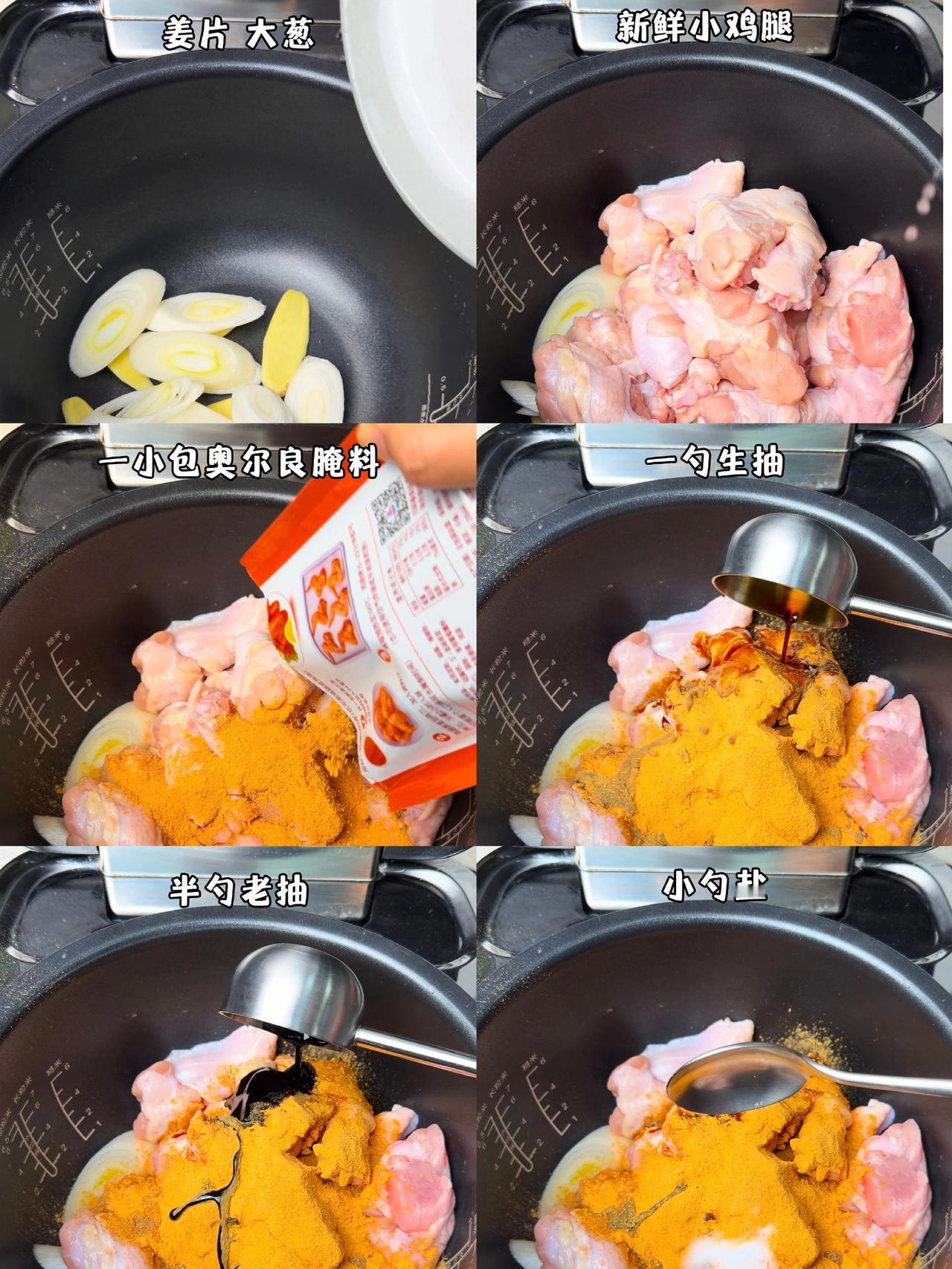 4️⃣电饭煲操作:腌好的鸡腿连同腌料一起倒入电饭煲,扣上盖子按煮饭键,等着电饭煲自动完成焖煮~