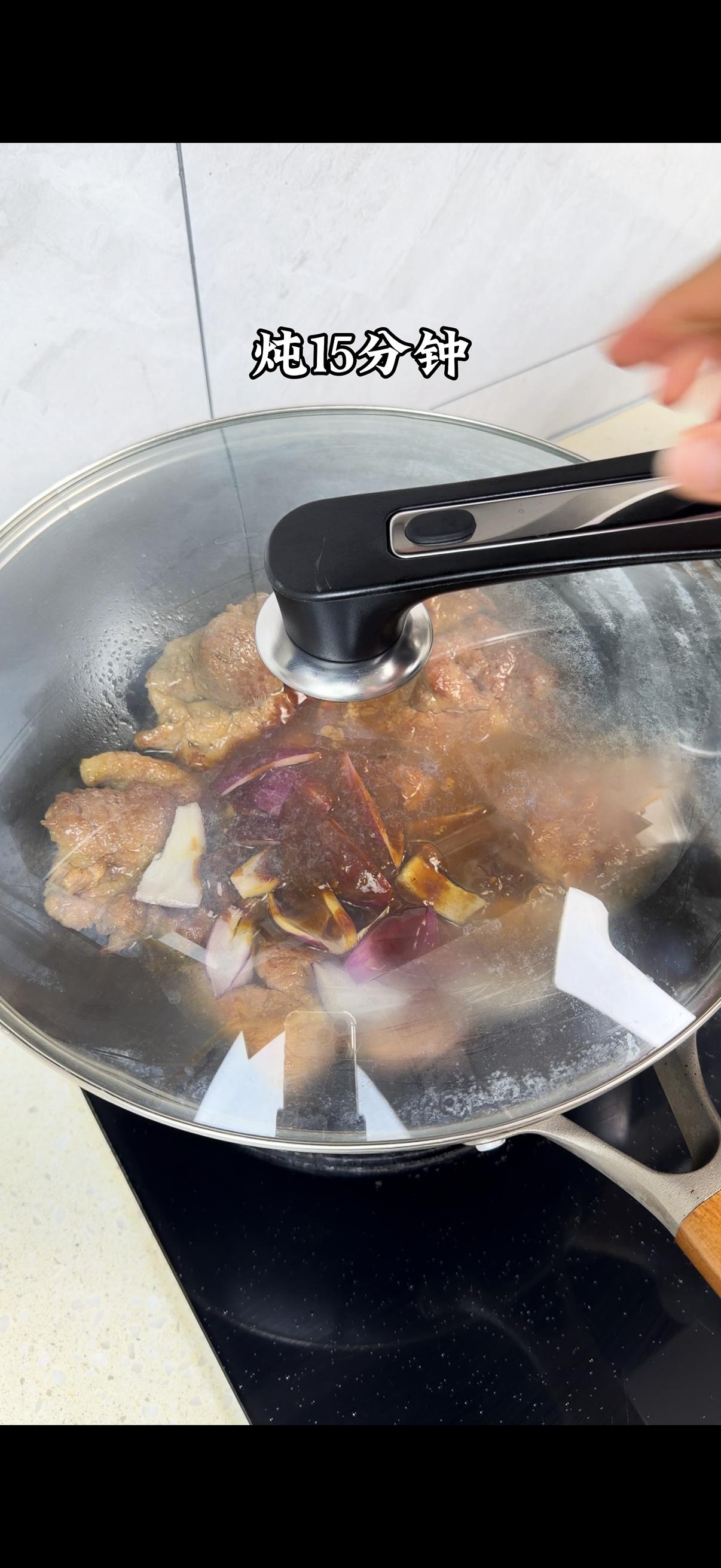 3️⃣炖煮收汁:倒入半碗水,大火烧开后小火焖炖15分钟,汤汁浓稠就差不多啦~