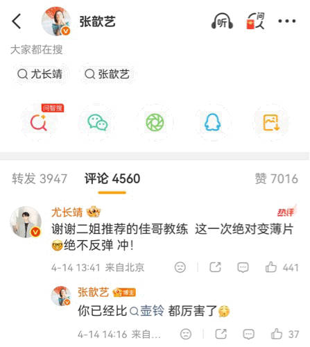 张歆艺给尤长靖推荐教练张歆艺和尤长靖之间的破次元壁联动来了,两人都这么喜欢冰壶运