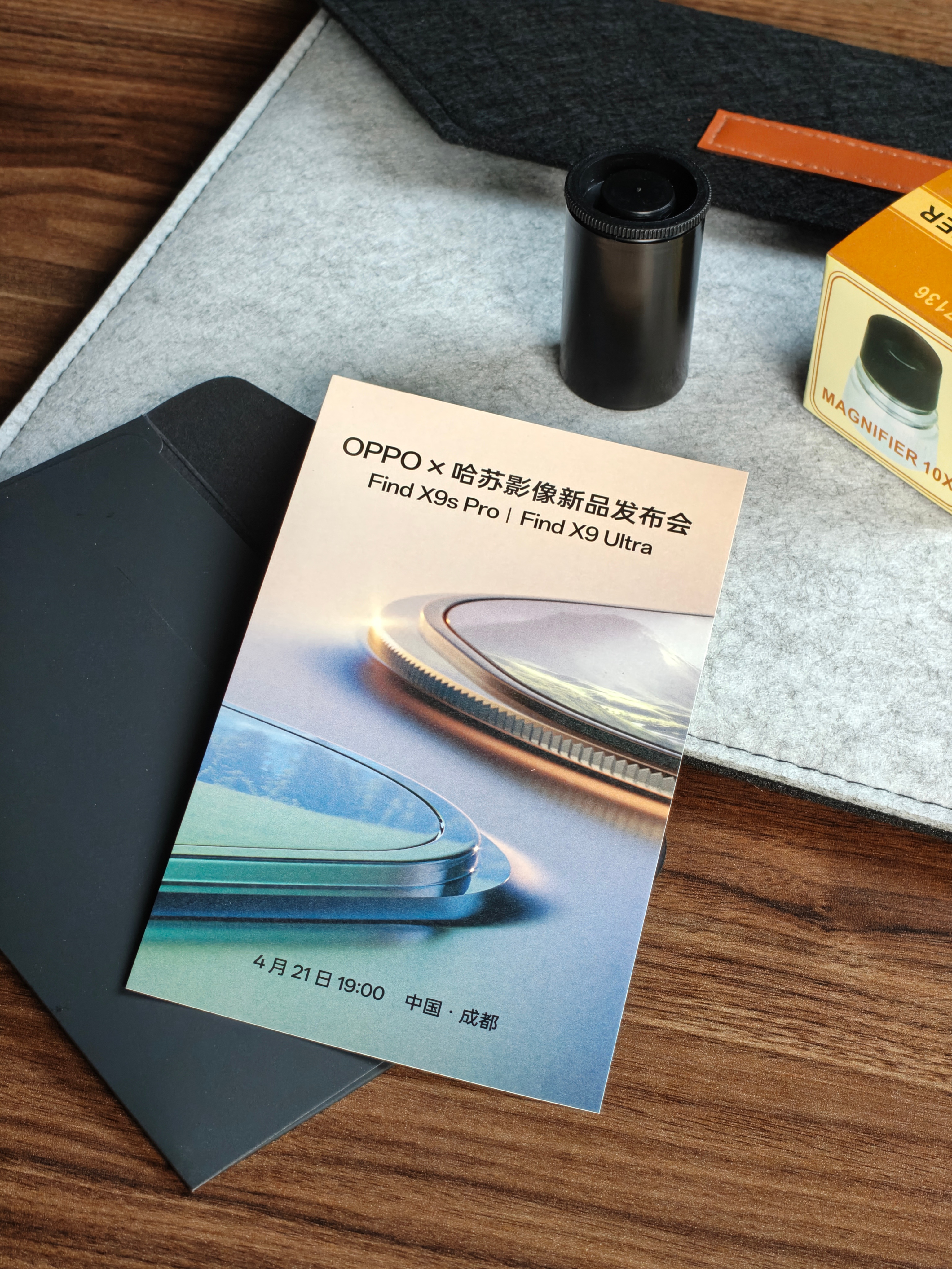 OPPO这次新品发布会邀请函太会了!一套胶片观景台套装,10倍观片放大镜+复古胶卷+观片灯板,直接唤醒胶片相机DNA,而且细节全是剧透: