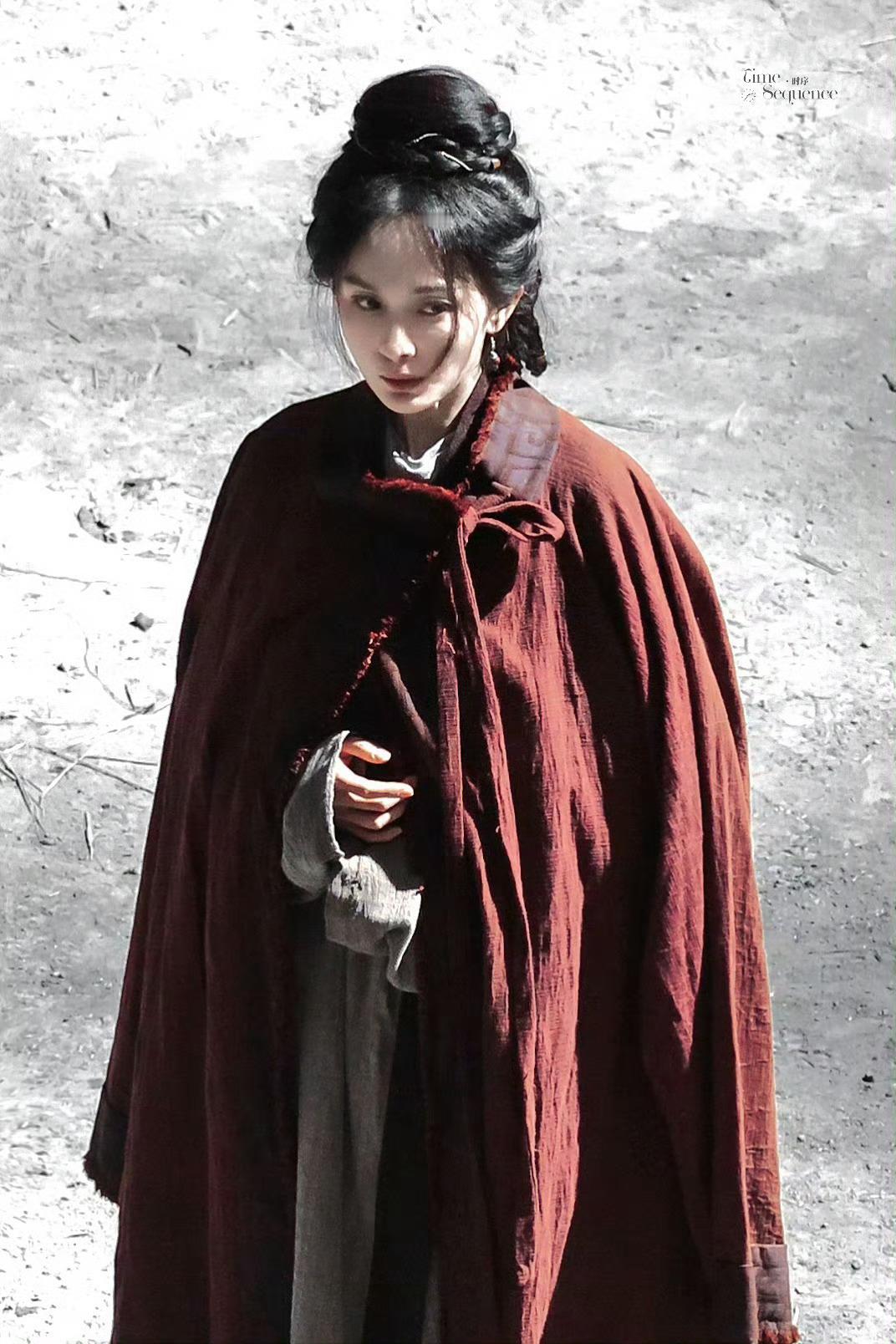 杨幂就越素越美🥺粗布麻衣难掩绝色杨幂红麻衣披风路透 杨幂冯湮儿