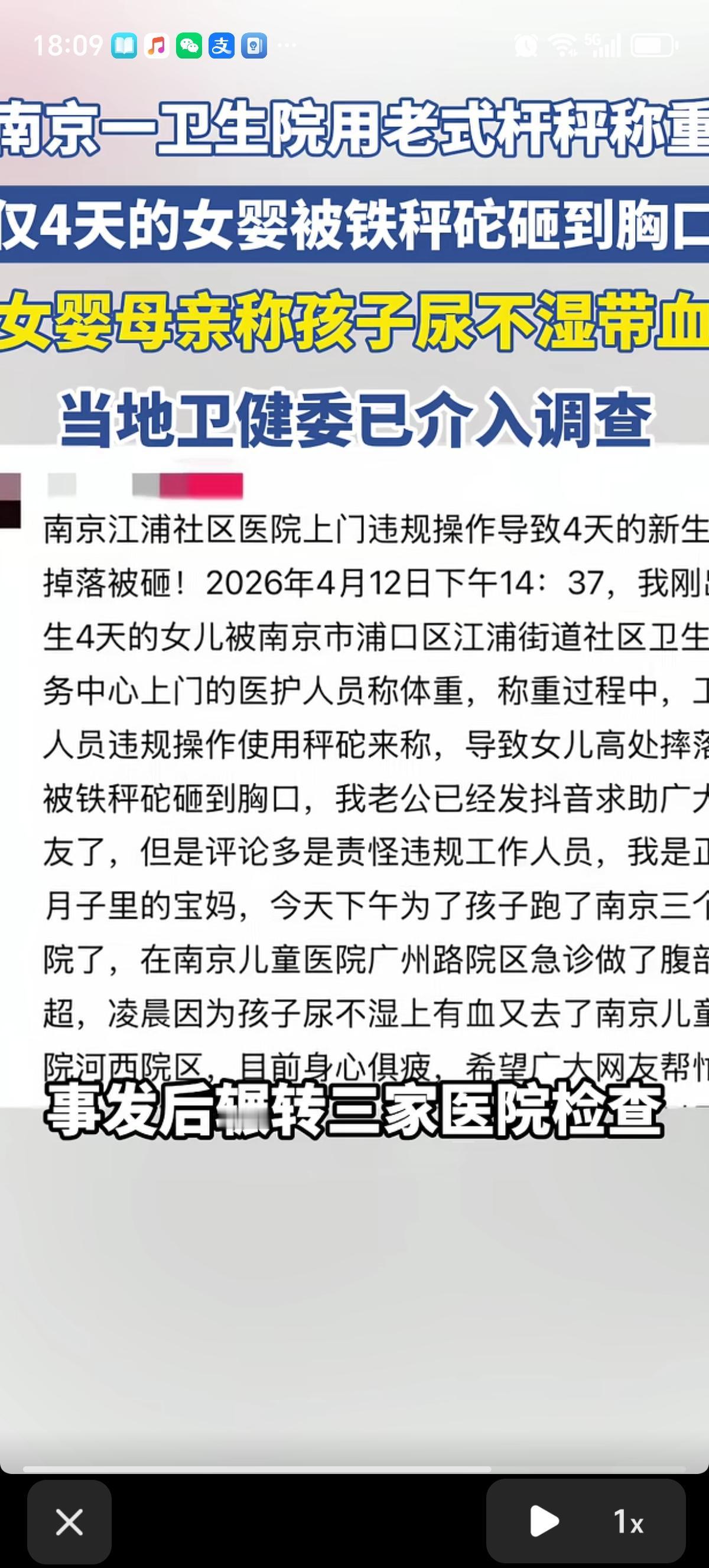 2026年南京出现了一件离奇的事情,一个卫生院给出生4天的婴儿量体重竟然用老式的杆称,偏偏还出现了意外,用来包裹婴儿抱被的布袋子在悬挂在称勾上时脱落了,称重的的人称勾还没拿稳,导致秤砣直接砸中了婴儿的胸口。