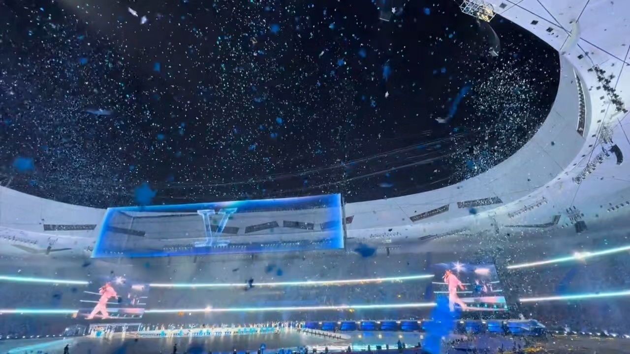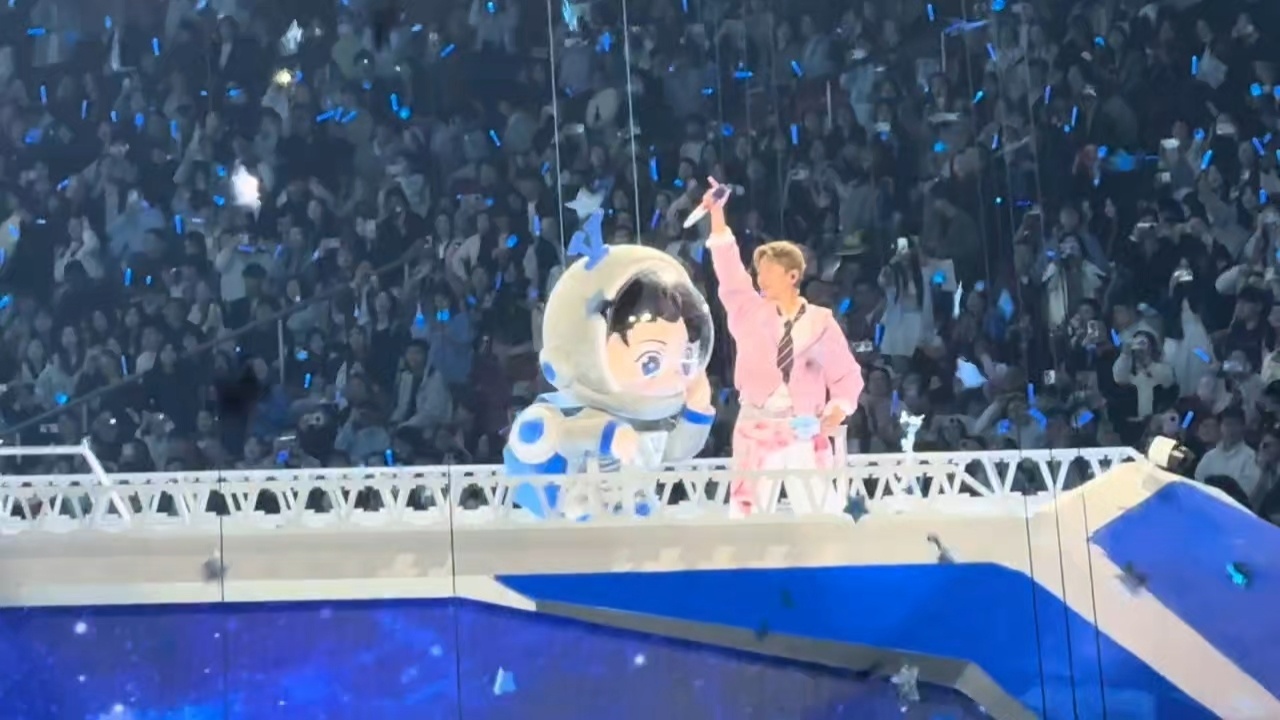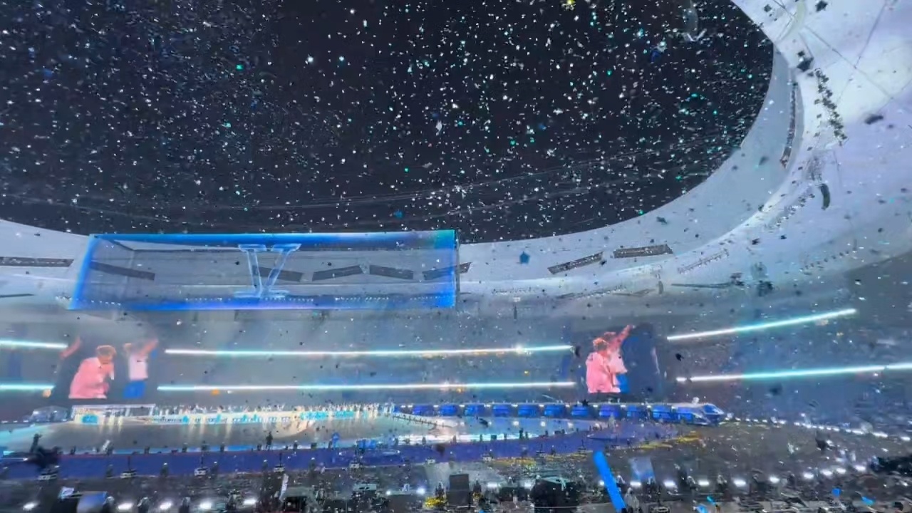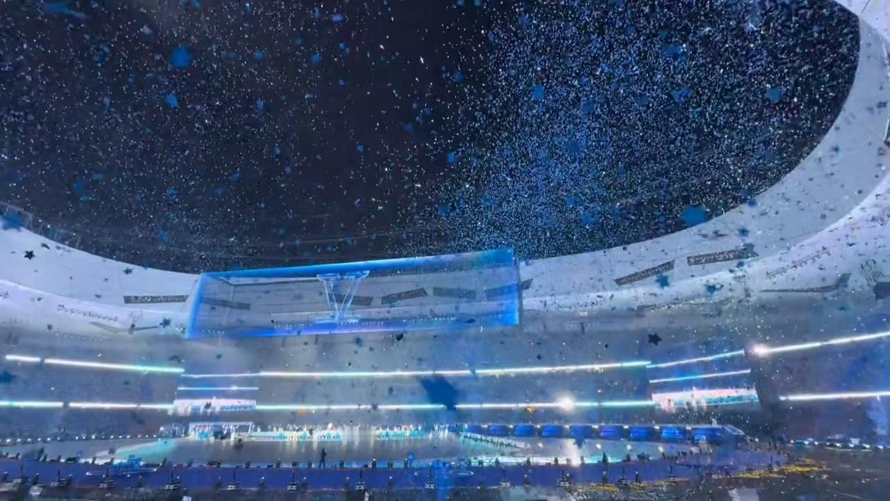张杰鸟巢下了一场过云雨张杰鸟巢演唱会遇上过云雨,人工星空顶流转星河,星星雪浪漫飘